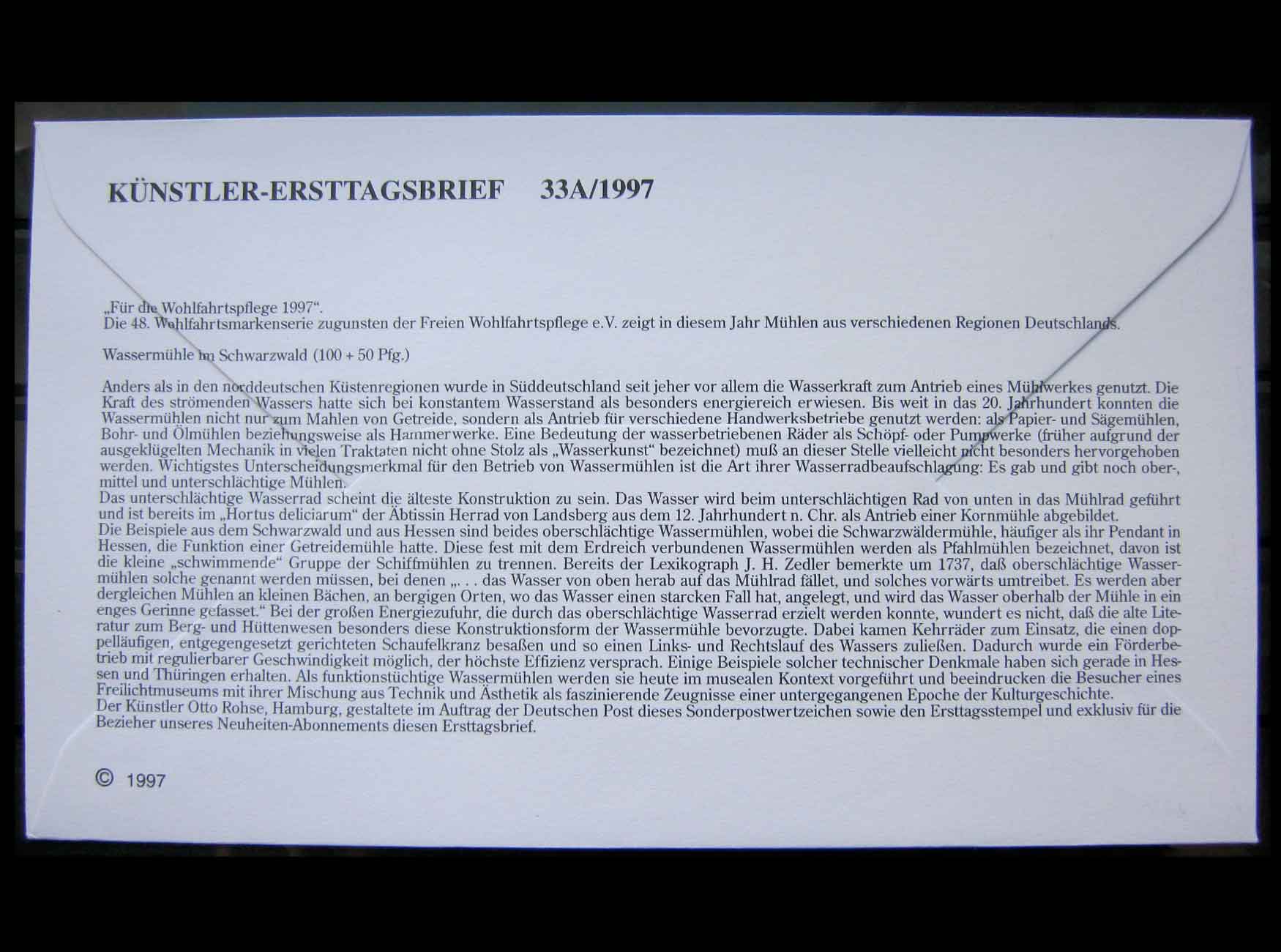ФРГ 1997 г. "Благотворительные марки: Вода и ветряные мельницы в Германии" FDC