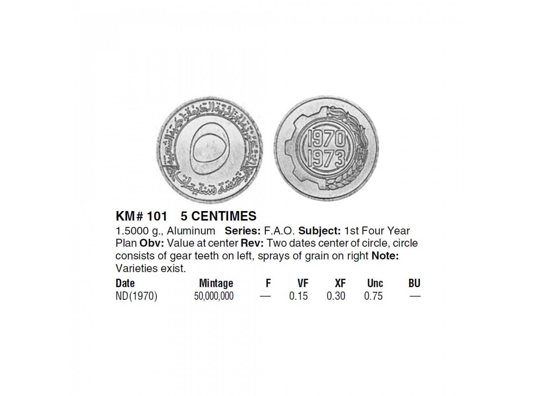 Алжир 5 сантимов 1970 г. (ФАО - Первый четырёхлетний план)
