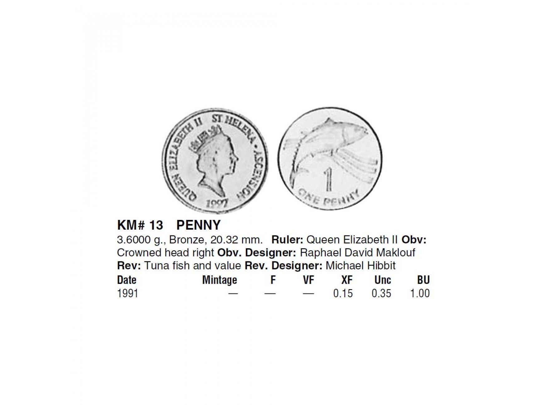 Остров Святой Елены и Вознесения 1 пенни 1991 г.