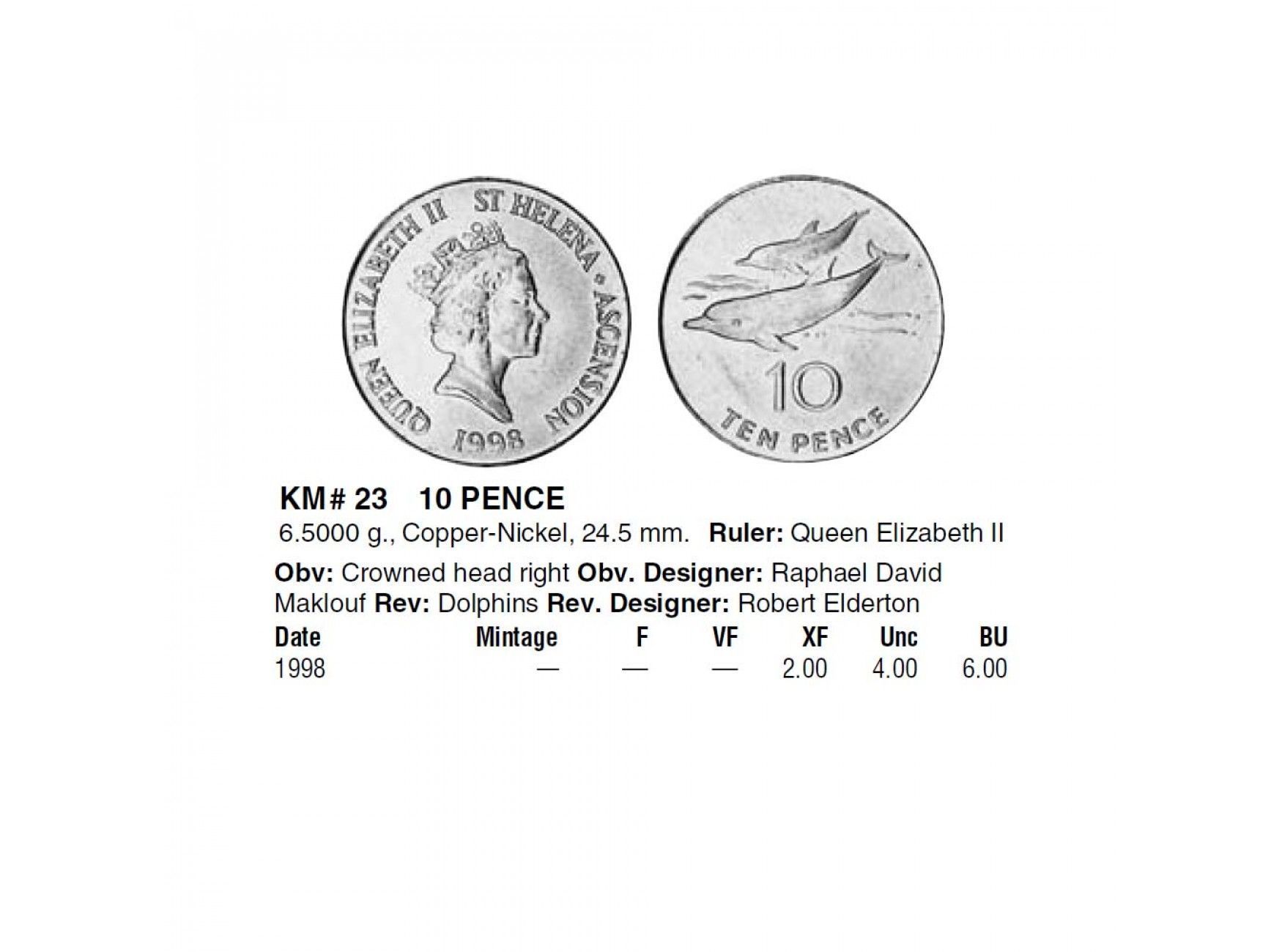 Остров Святой Елены и Вознесения 10 пенсов 1998 г.