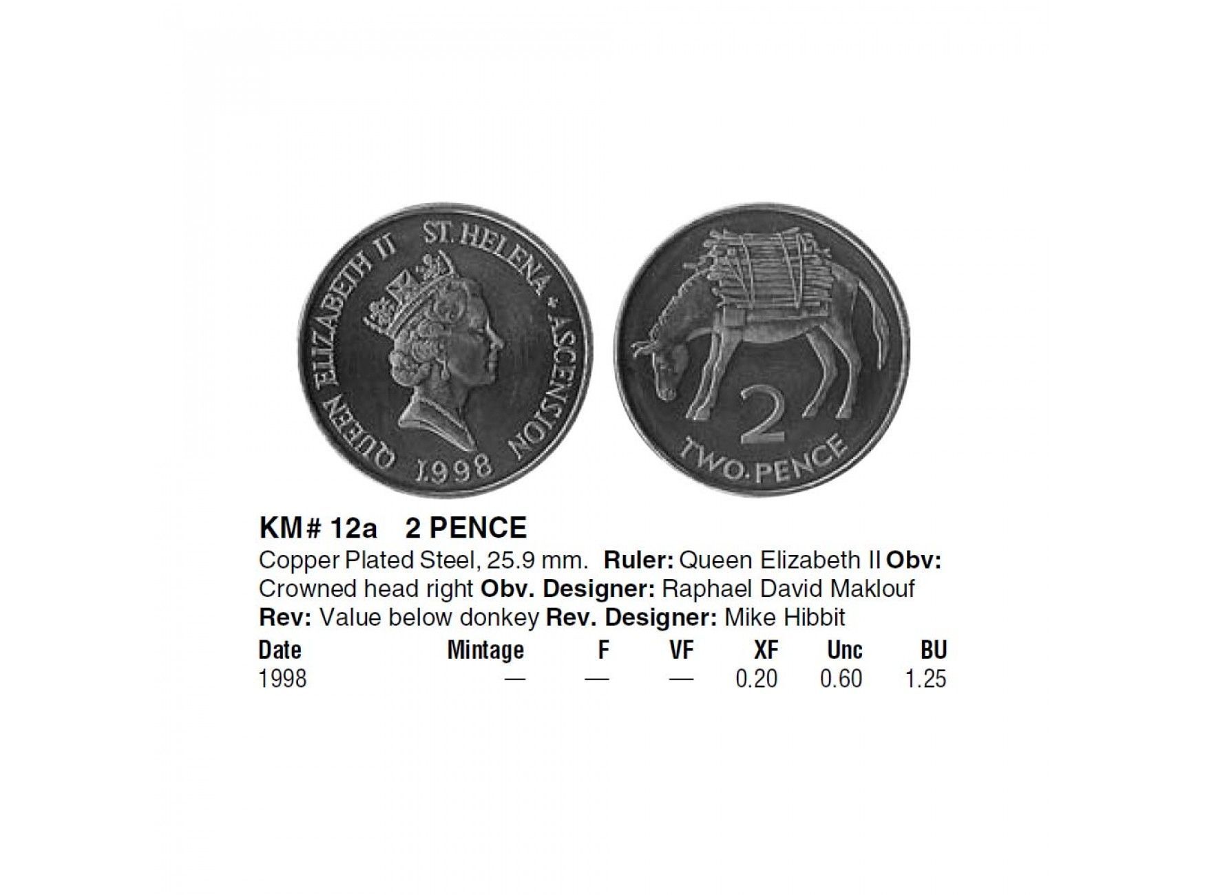Остров Святой Елены и Вознесения 2 пенса 1998 г.