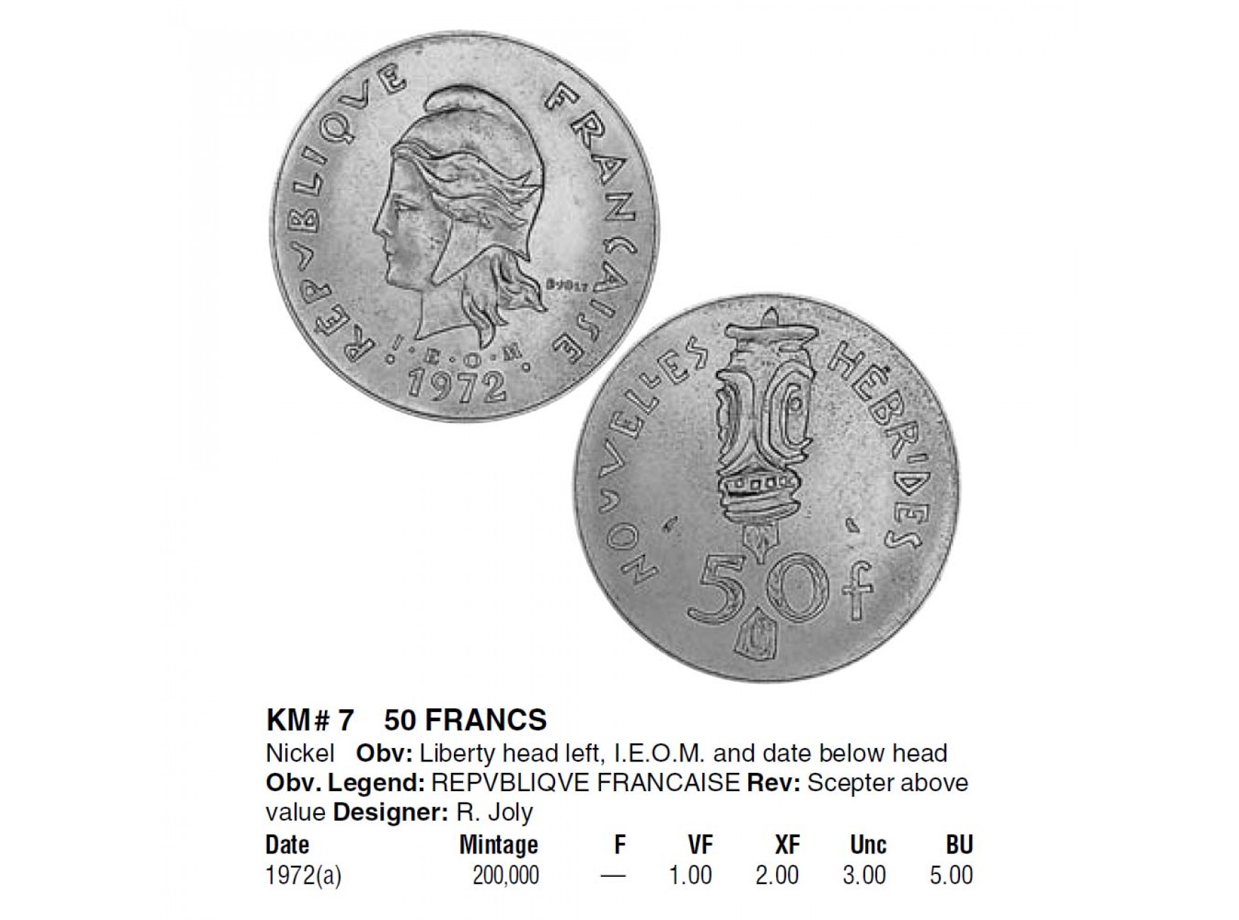 Новые Гебриды 50 франков 1972 г.