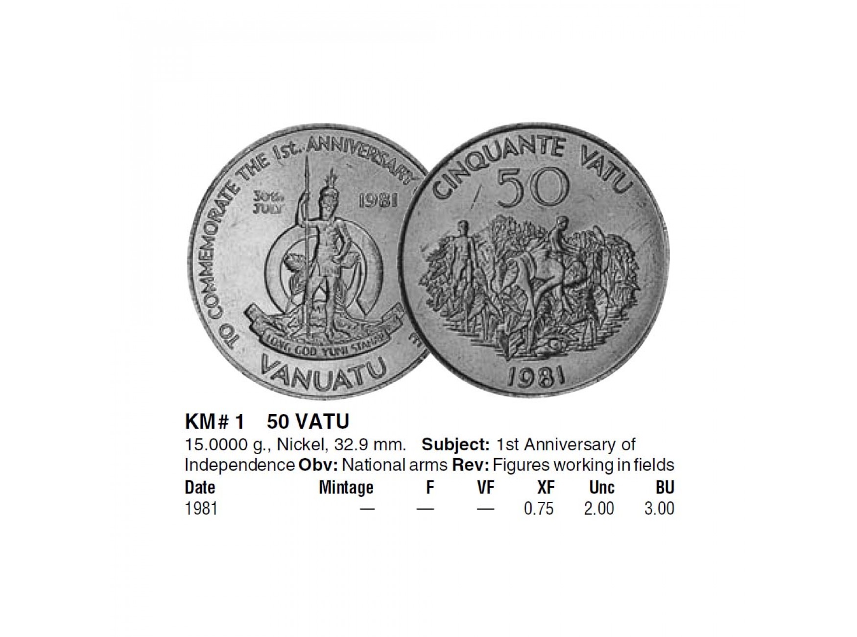 Вануату 50 вату 1981 г. (Годовщина независимости)