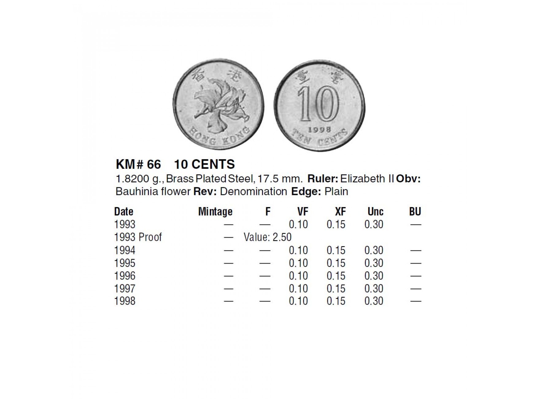 Гонконг 10 центов 1998 г.