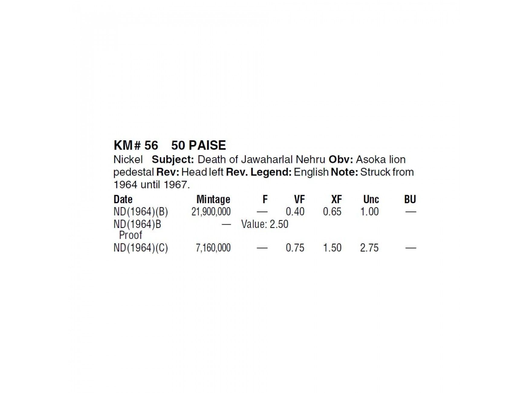 Индия 50 пайс 1964 г. (Смерть Джавахарлала Неру )