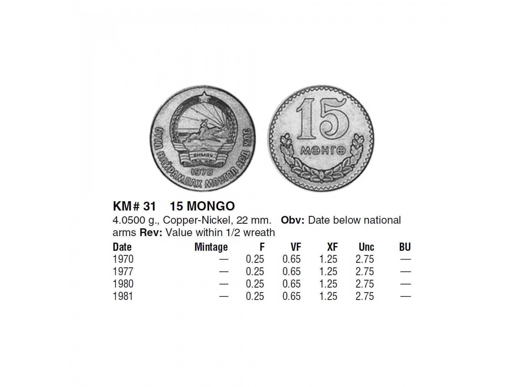 Монголия 15 менге 1981 г. (небольшая деформация)