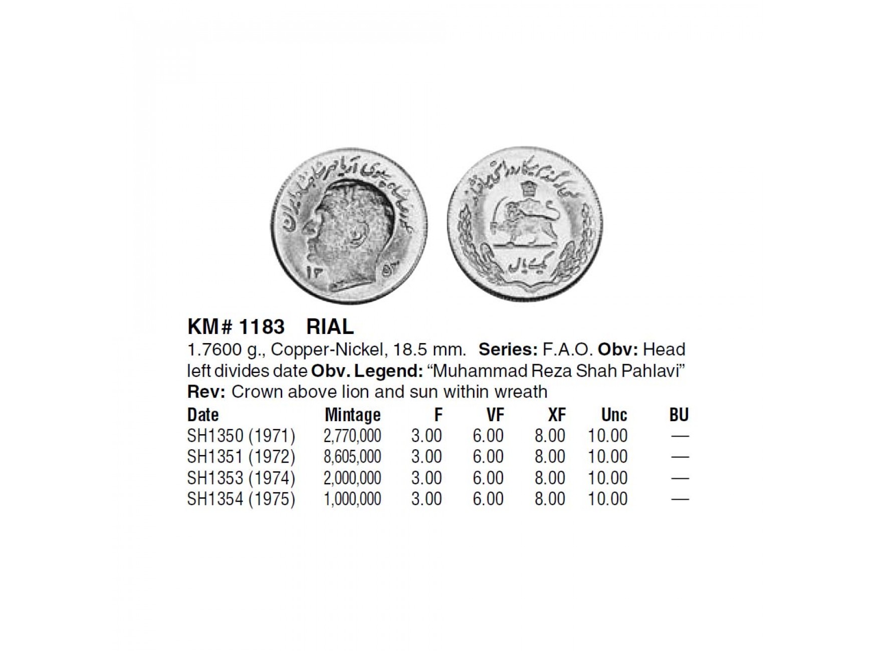 Иран 1 риал 1971 г. (ФАО - Продовольственная программа)