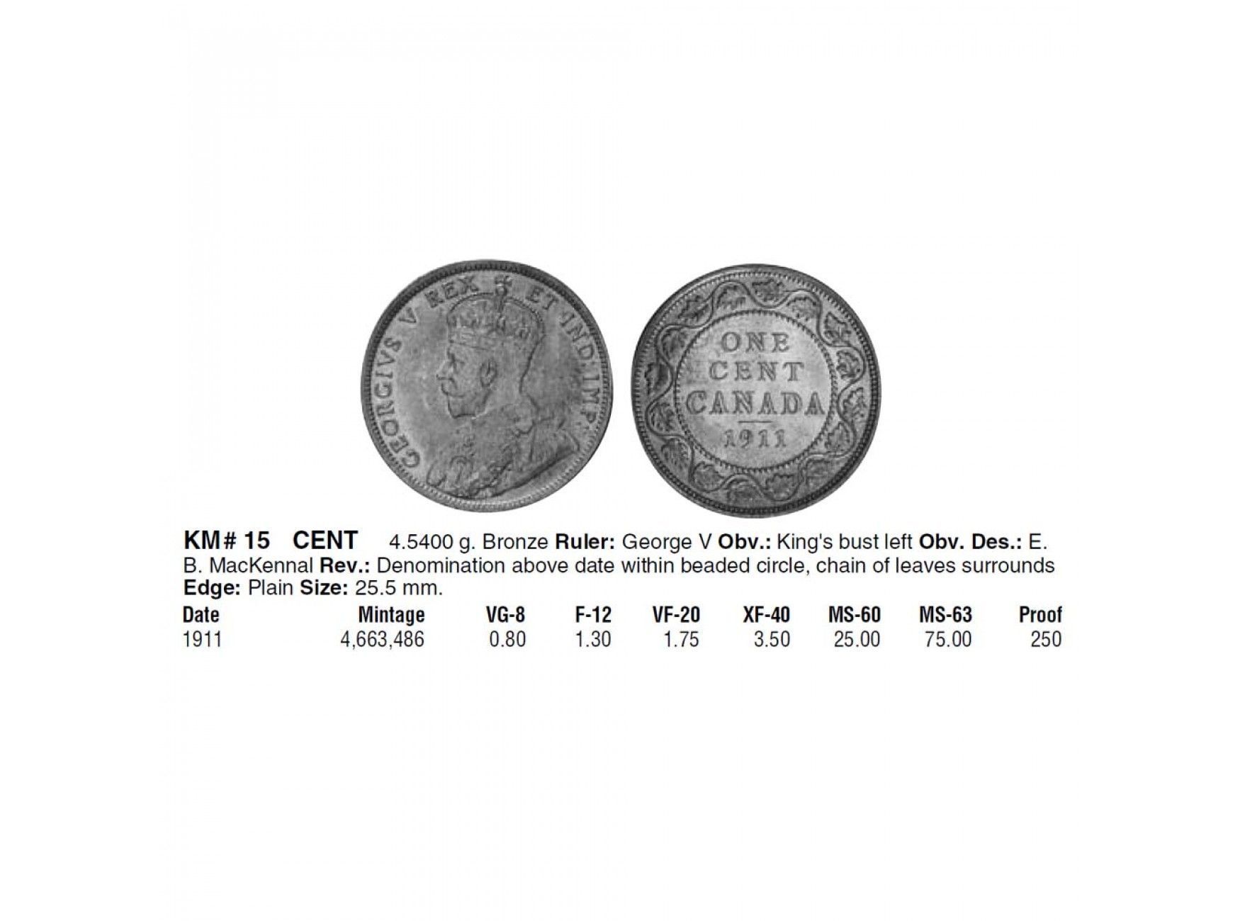Канада 1 цент 1911 г.