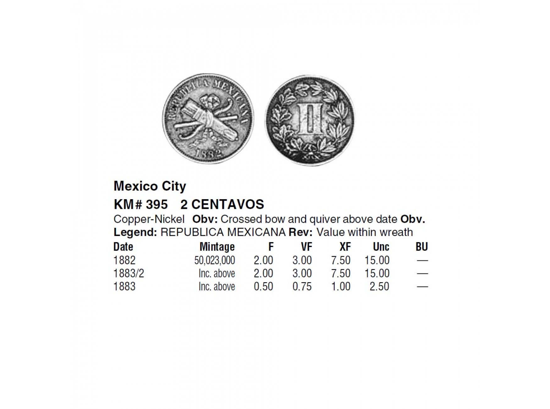 Мексика 2 сентаво 1883 г.