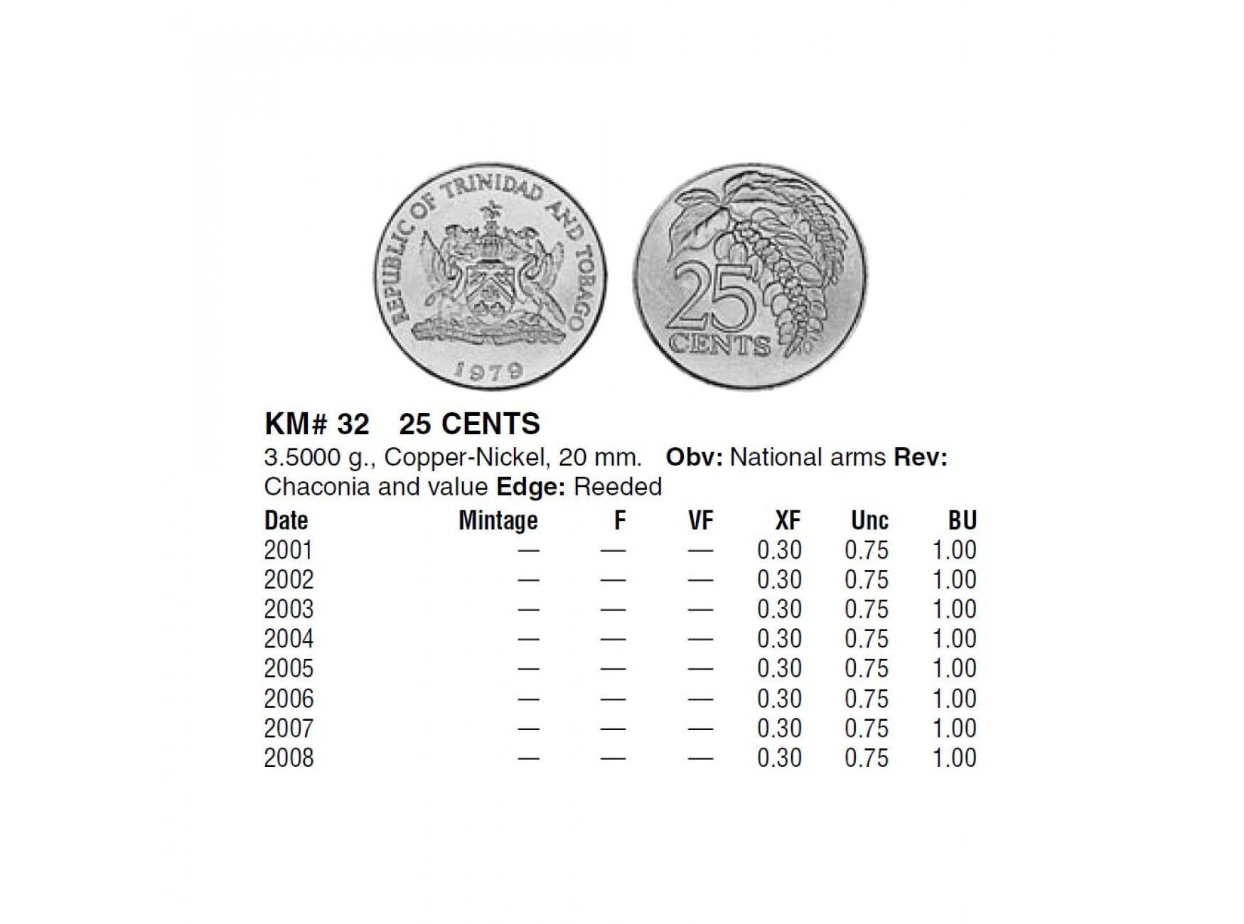 Тринидад и Тобаго 25 центов 2007 г.
