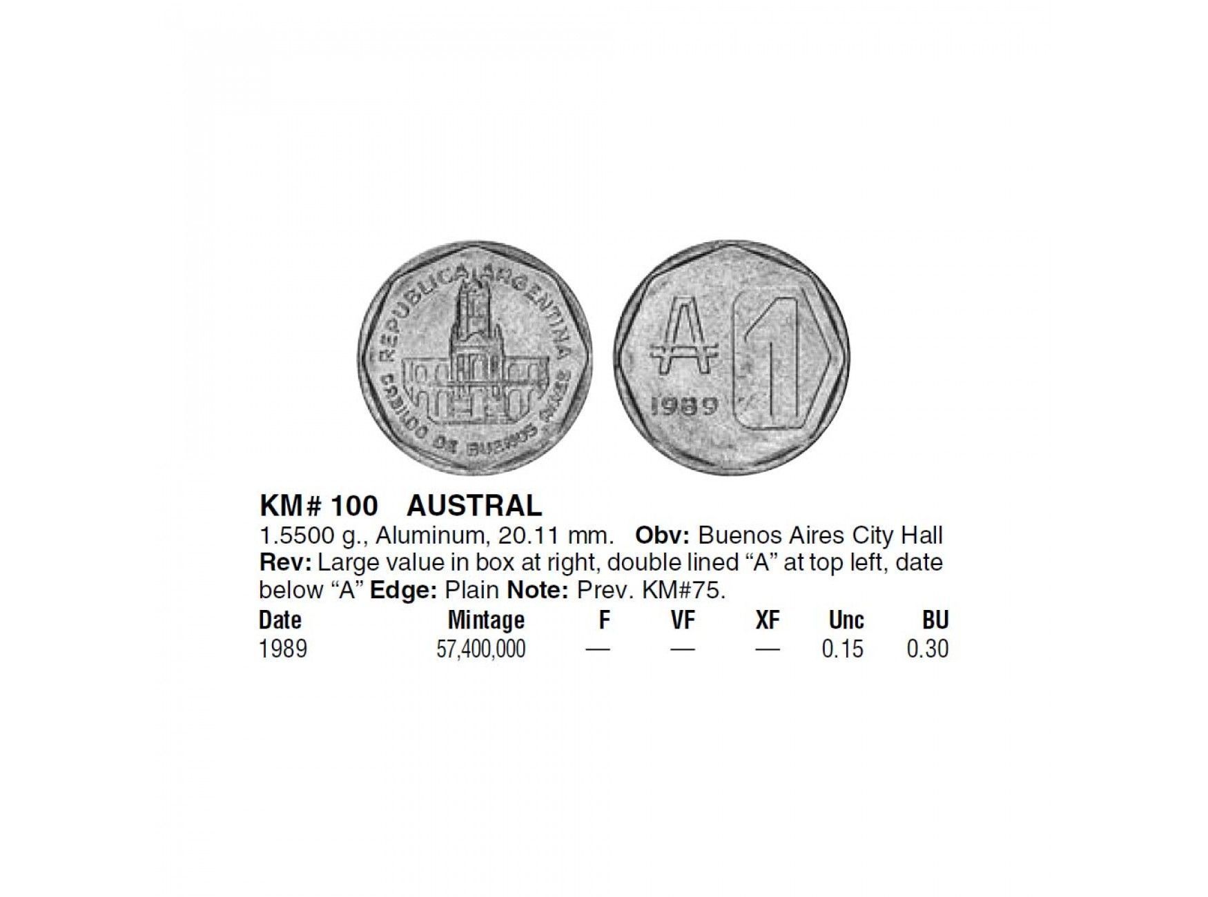 Аргентина 1 аустраль 1989 г.