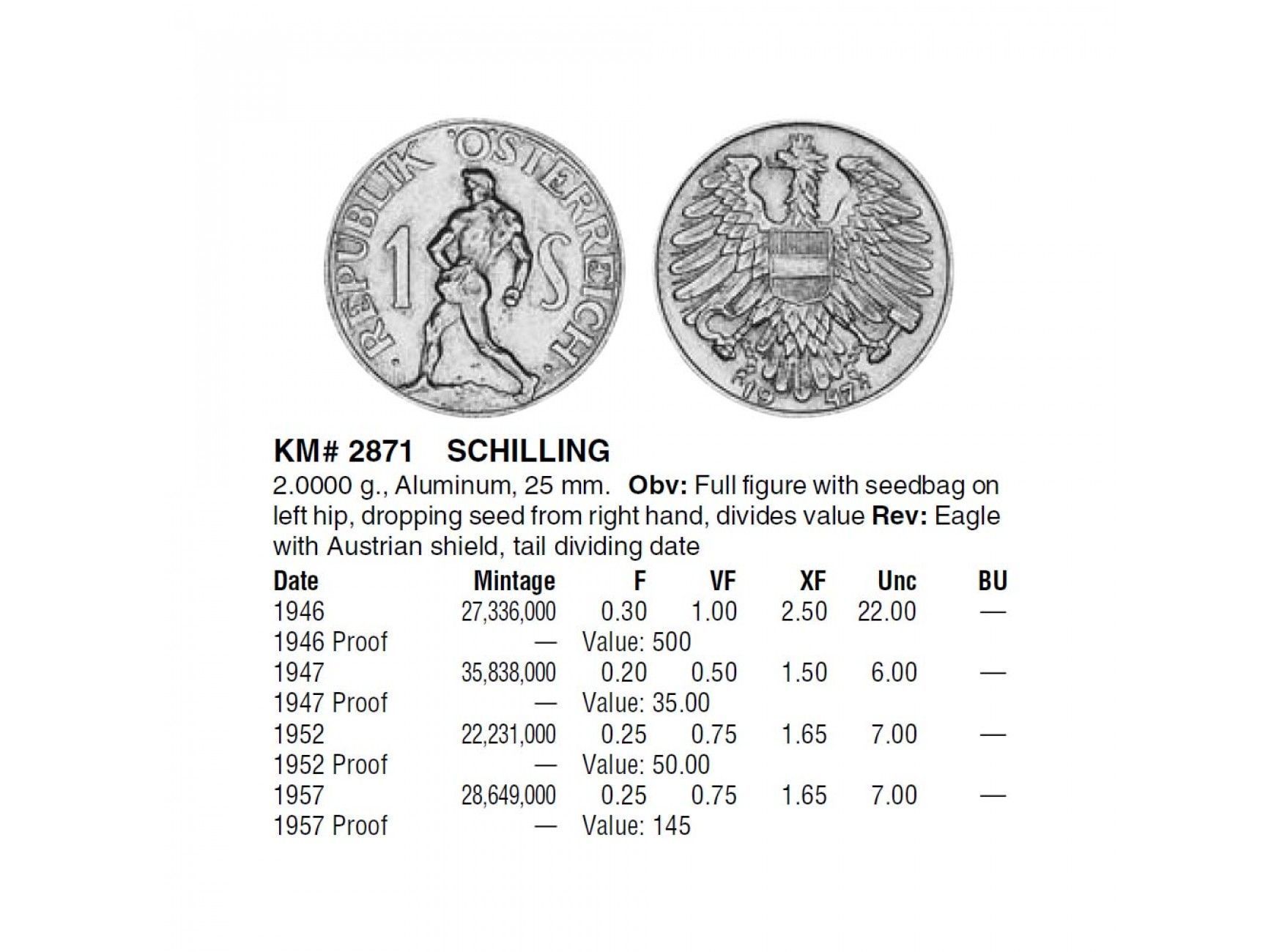 Австрия 1 шиллинг 1952 г.