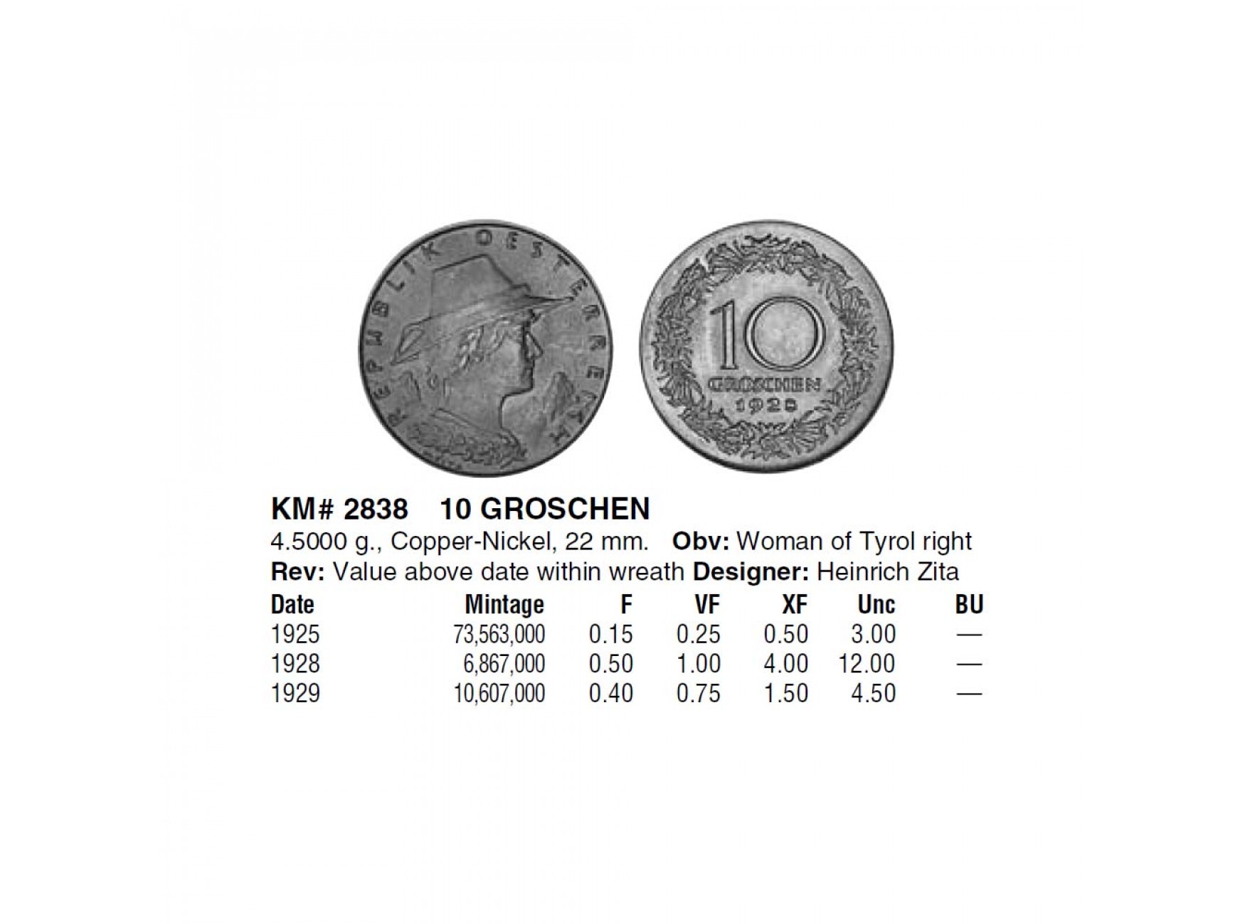Австрия 10 грошей 1925 г.