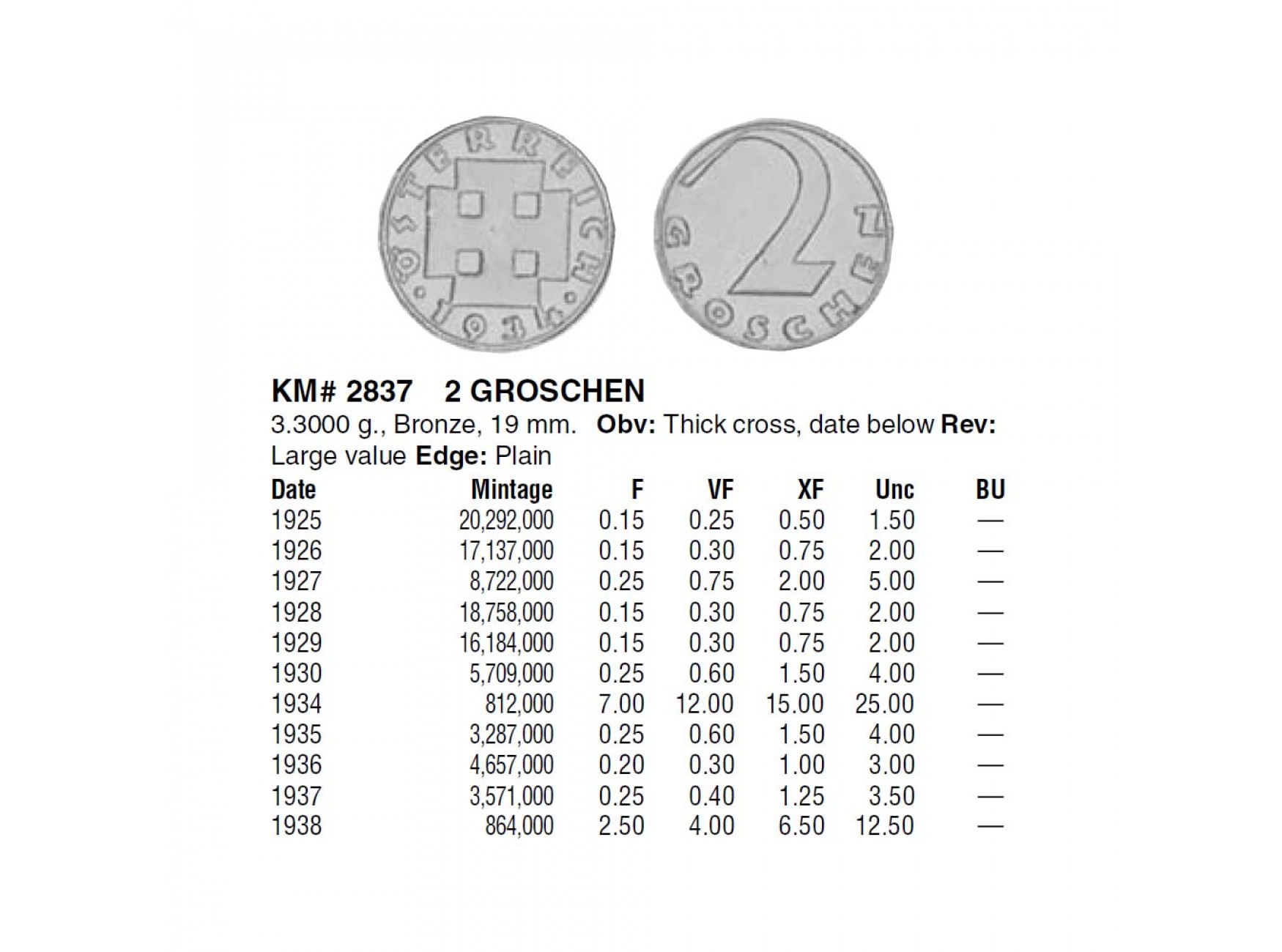 Австрия 2 гроша 1927 г.