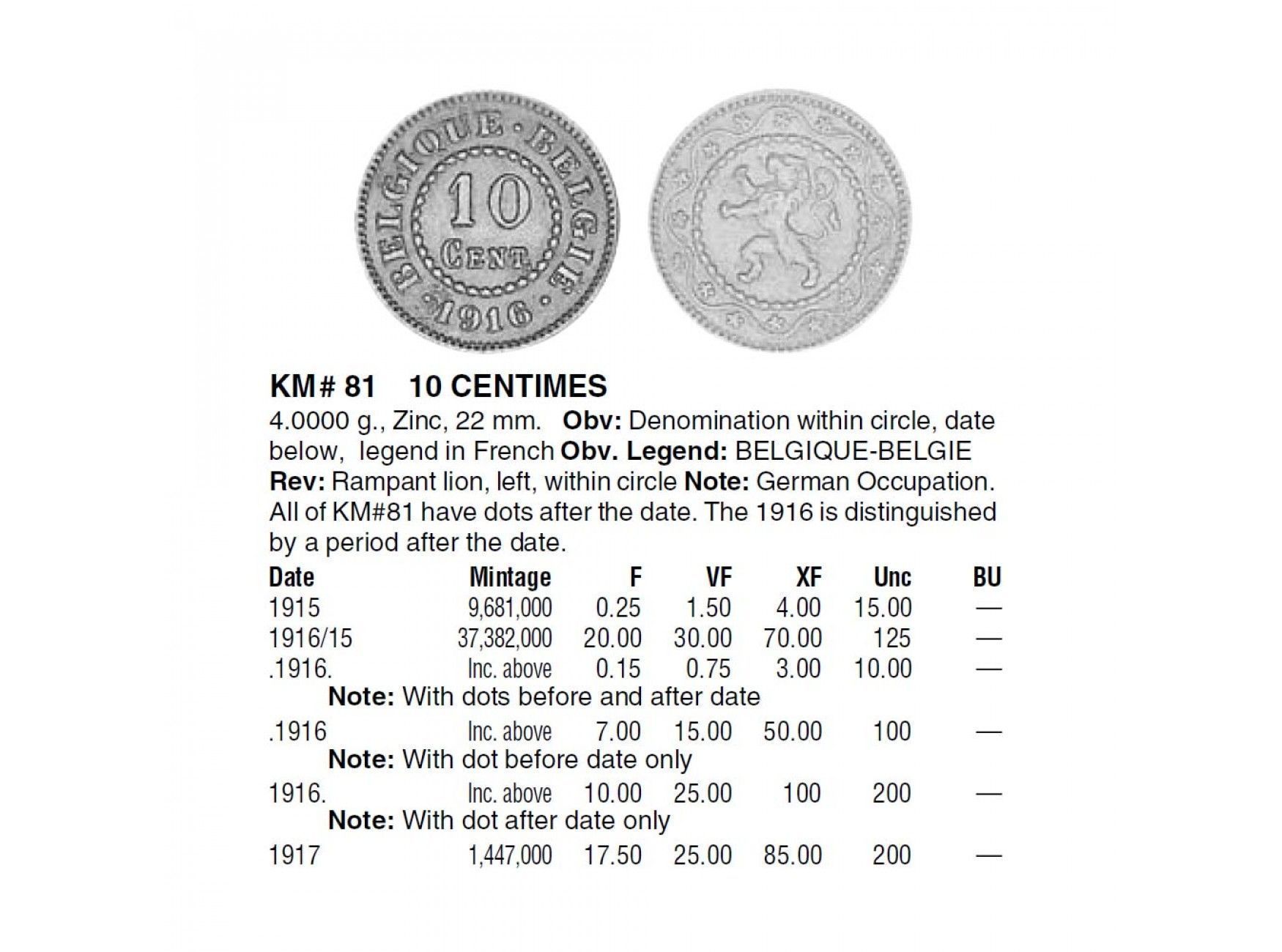 Бельгия 10 сантимов 1916 г.