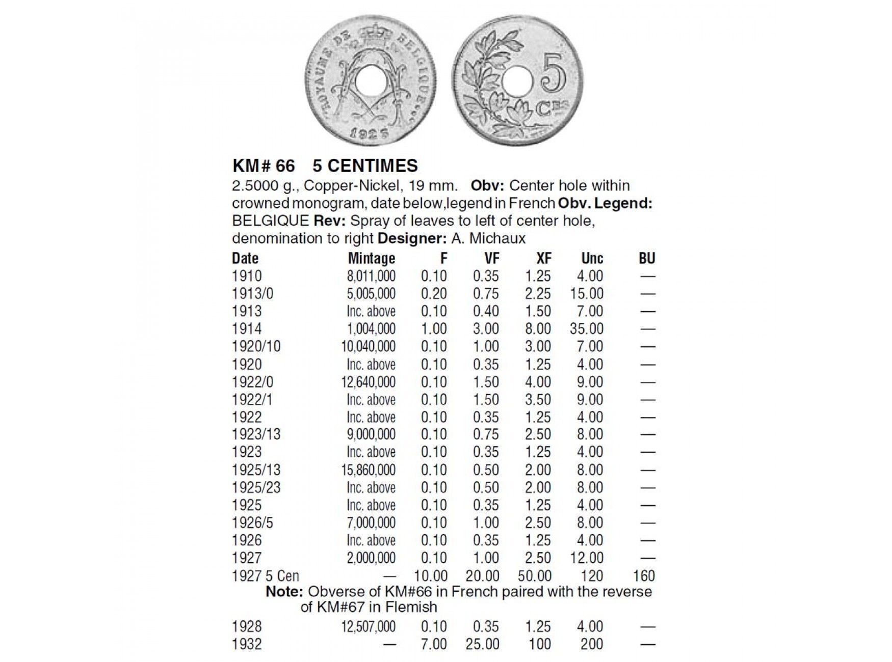 Бельгия 5 сантимов 1927 г. (Belgique)