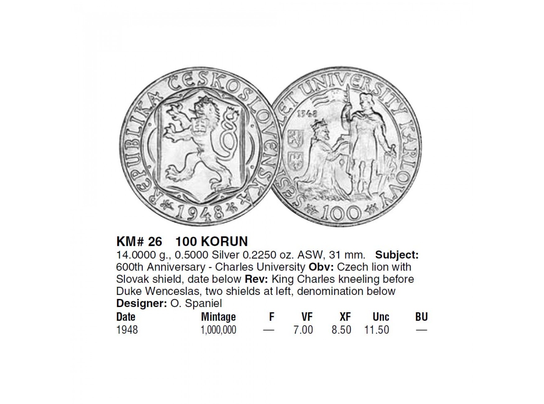 Чехословакия 100 крон 1948 г. (600 лет Карлову университету)
