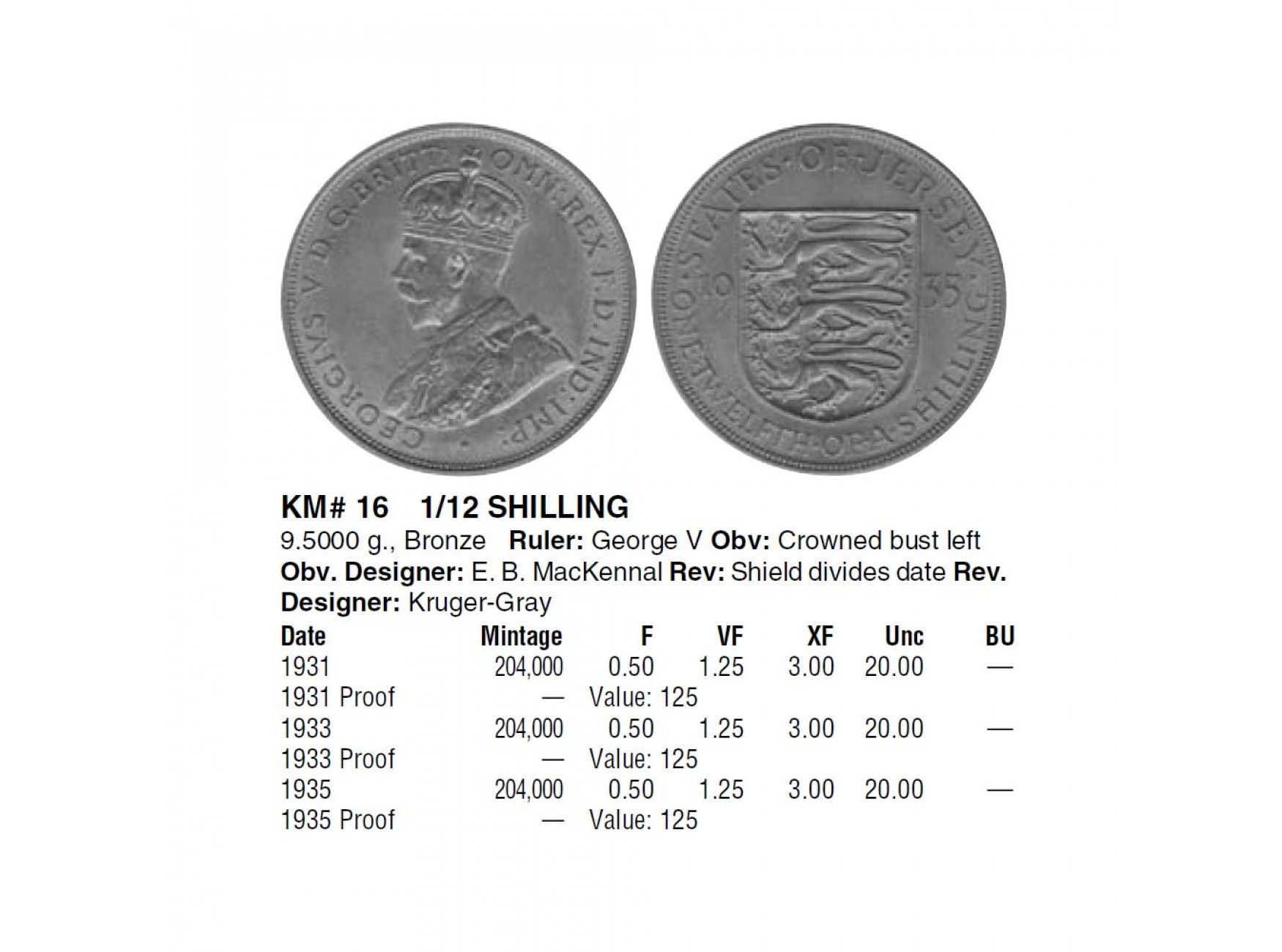 Джерси 1/12 шиллинга 1931 г.