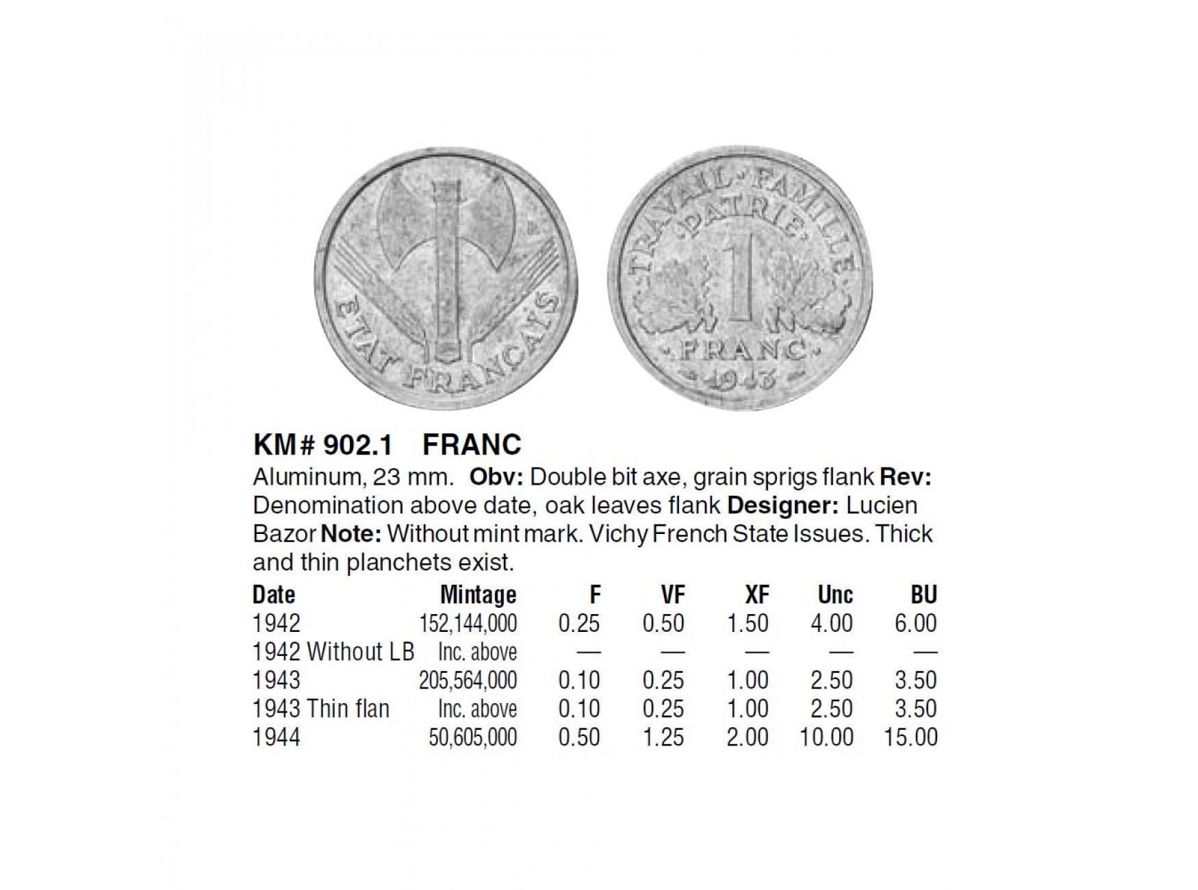 Франция 1 франк 1942 г.