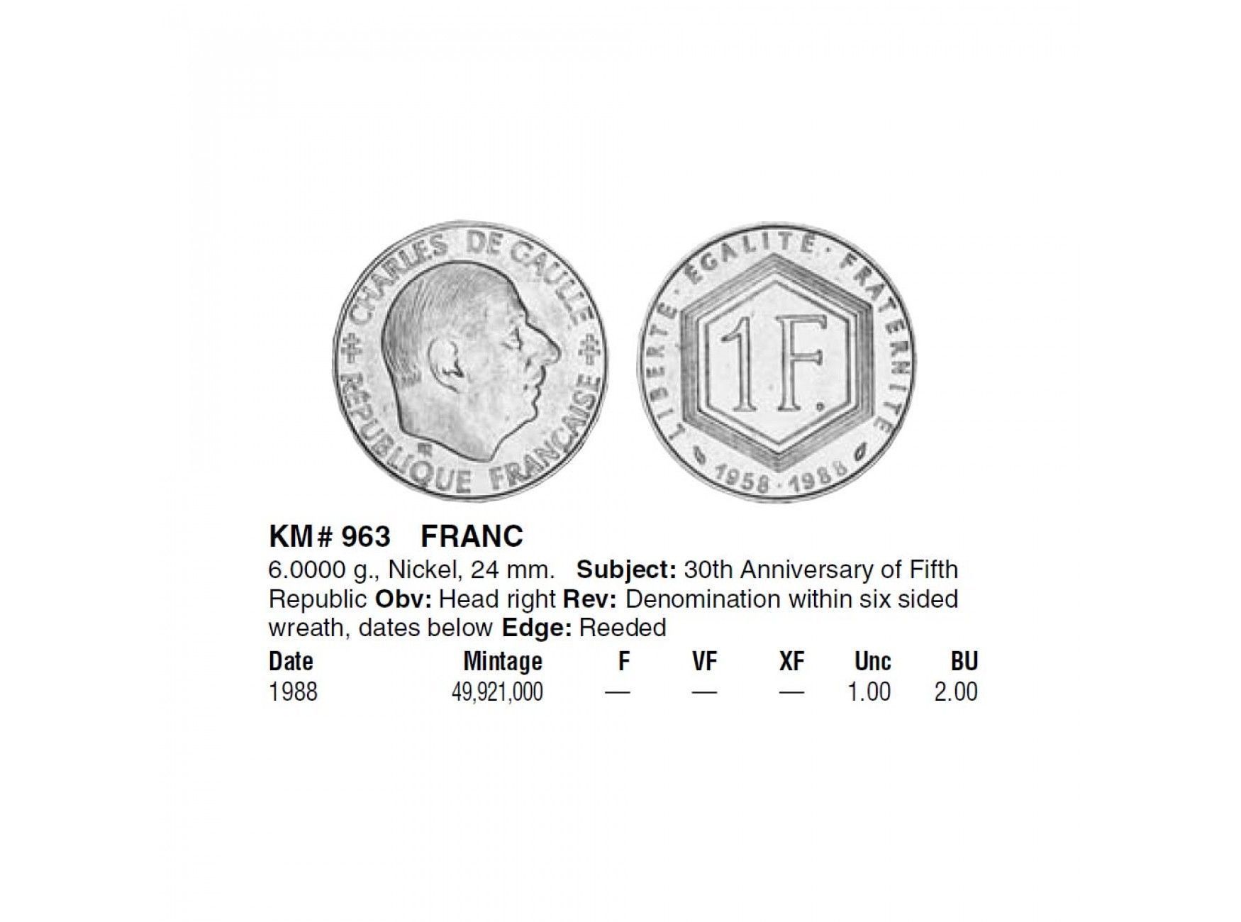 Франция 1 франк 1988 г. (30 лет Пятой Республике)