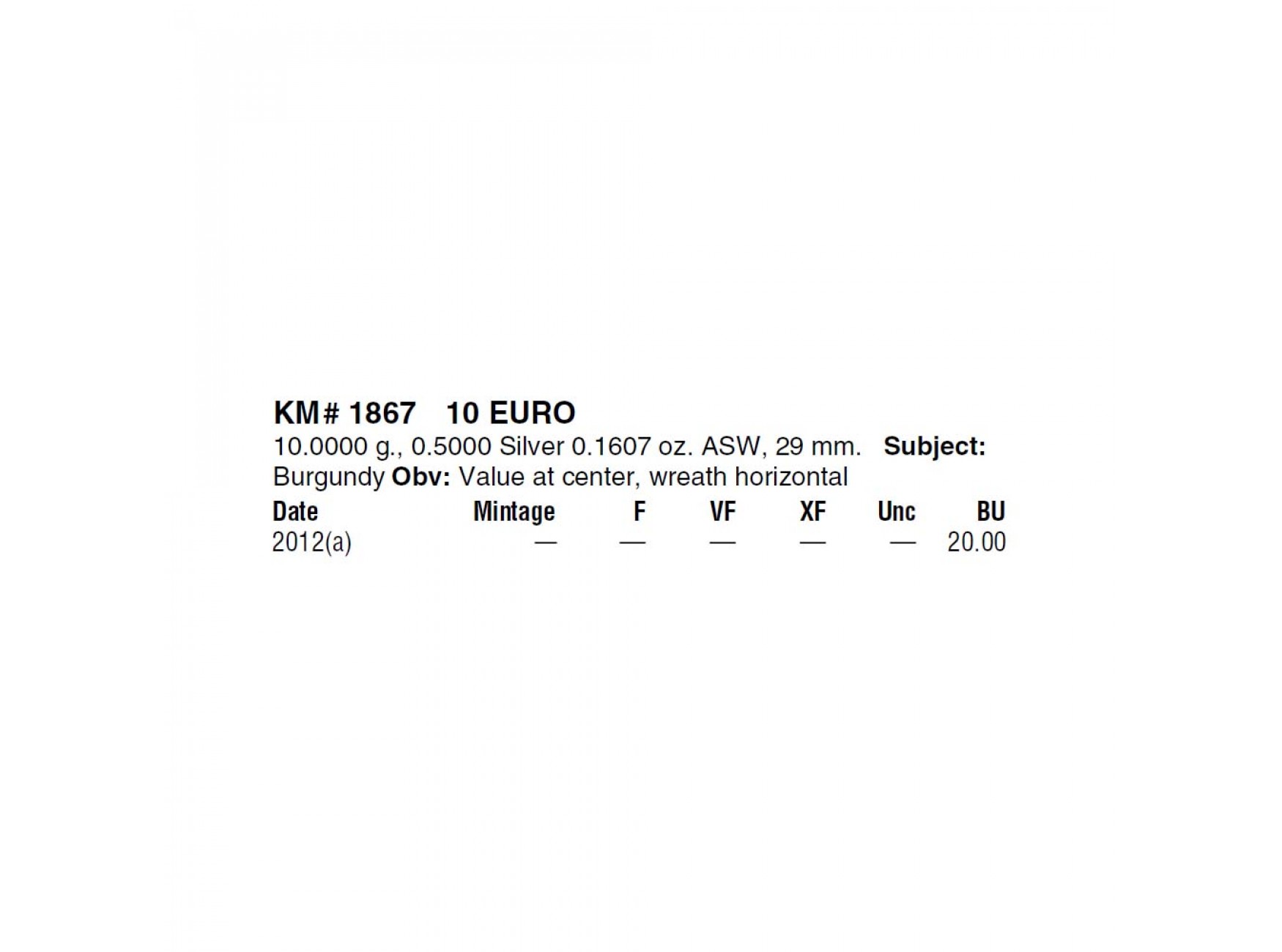 Франция 10 евро 2012 г. (Регионы Франции - Бургундия)