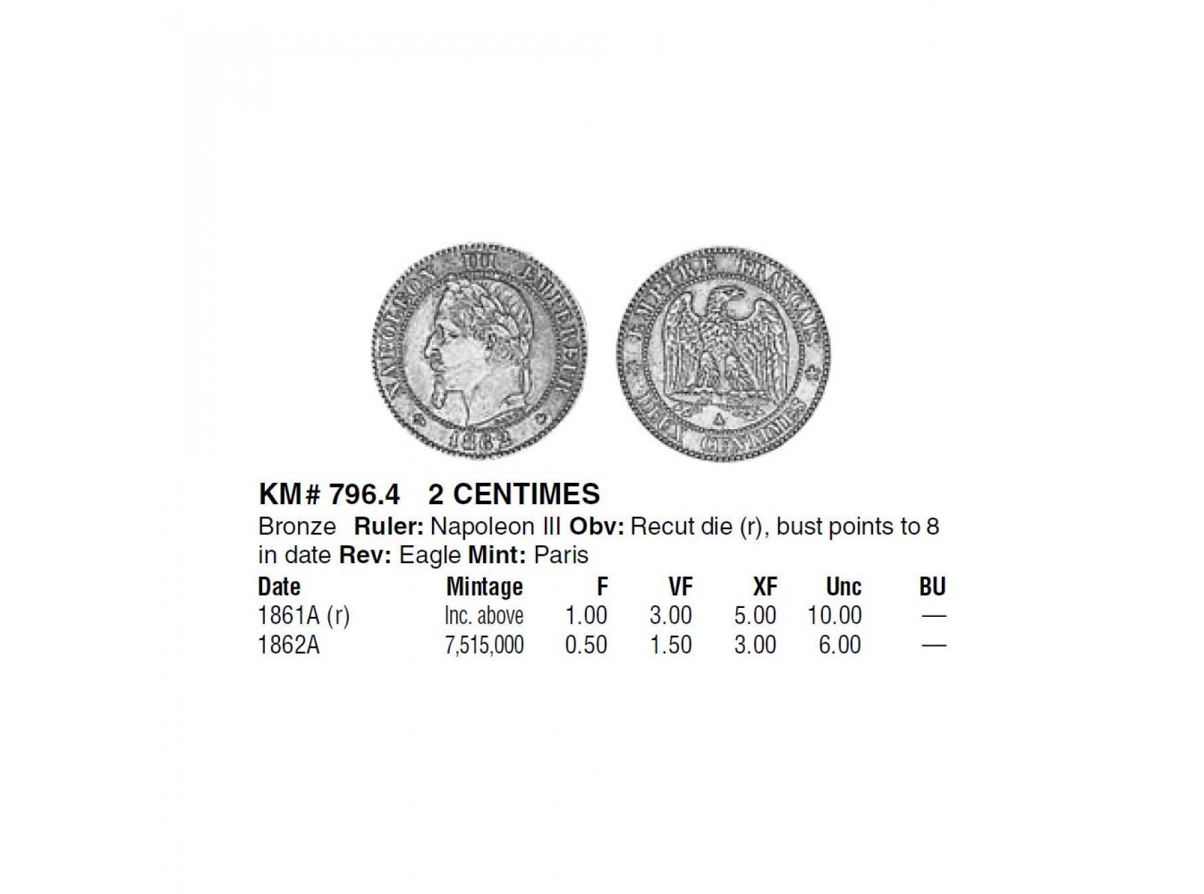 Франция 2 сантима 1861 г. A