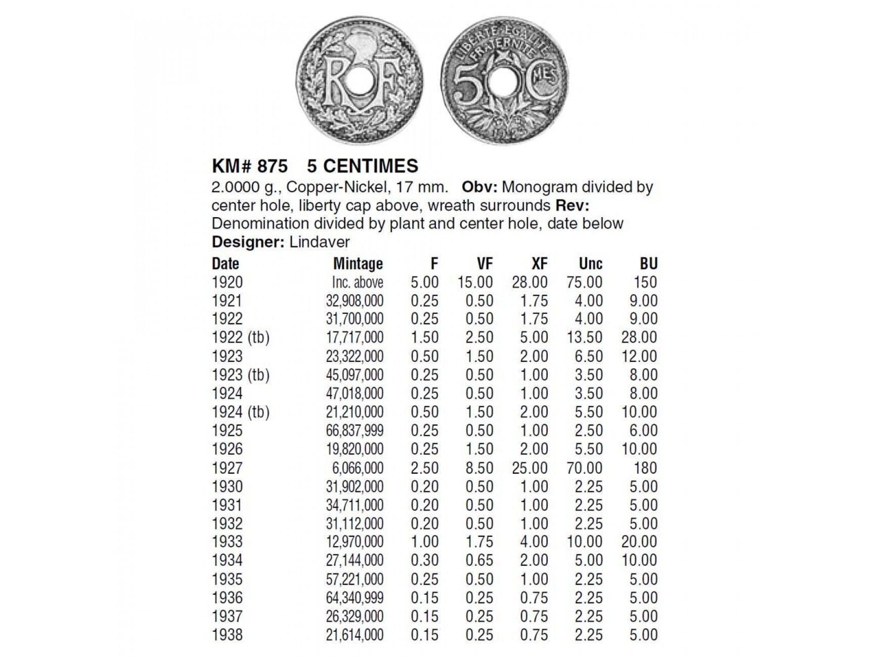 Франция 5 сантимов 1933 г.