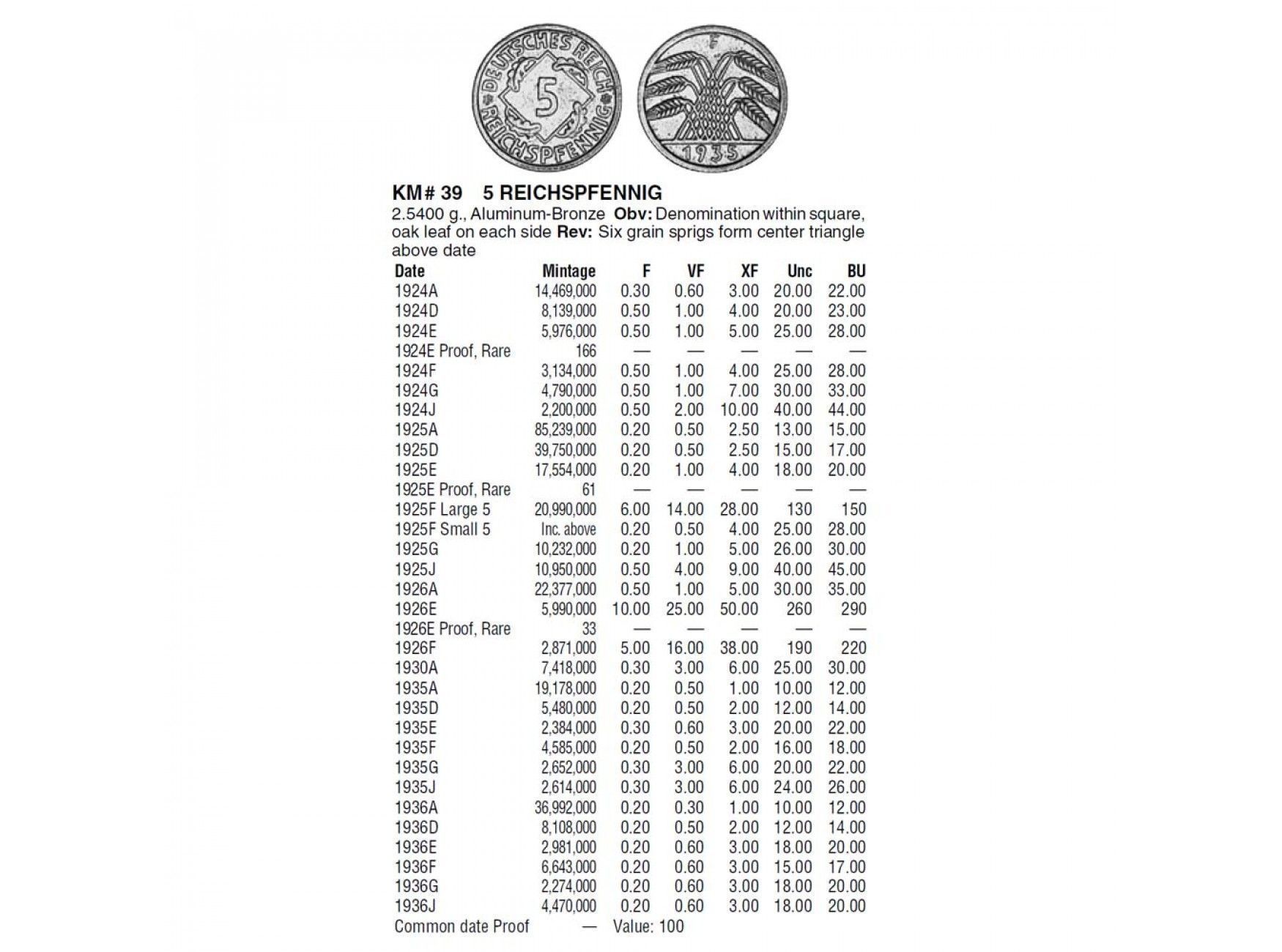 Германия 5 пфеннигов (reichs) 1925 г. D