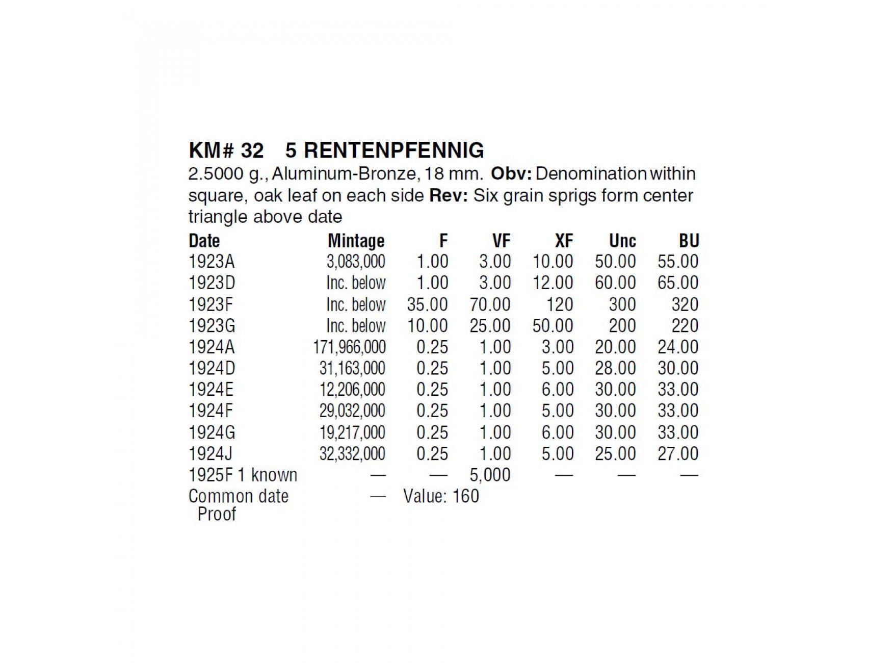 Германия 5 пфеннигов (renten) 1924 г. F