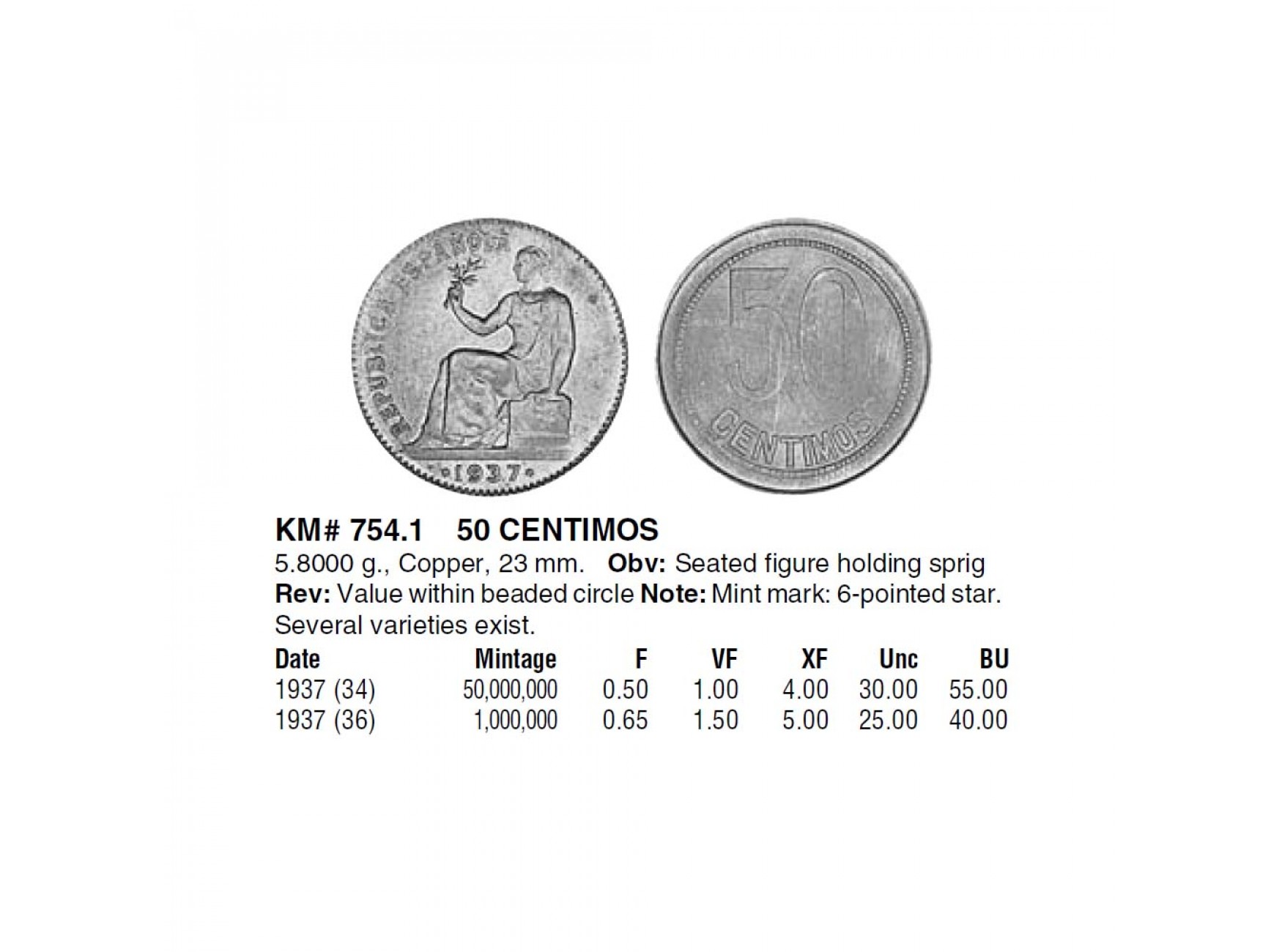 Испания 50 сентимо 1937 г.