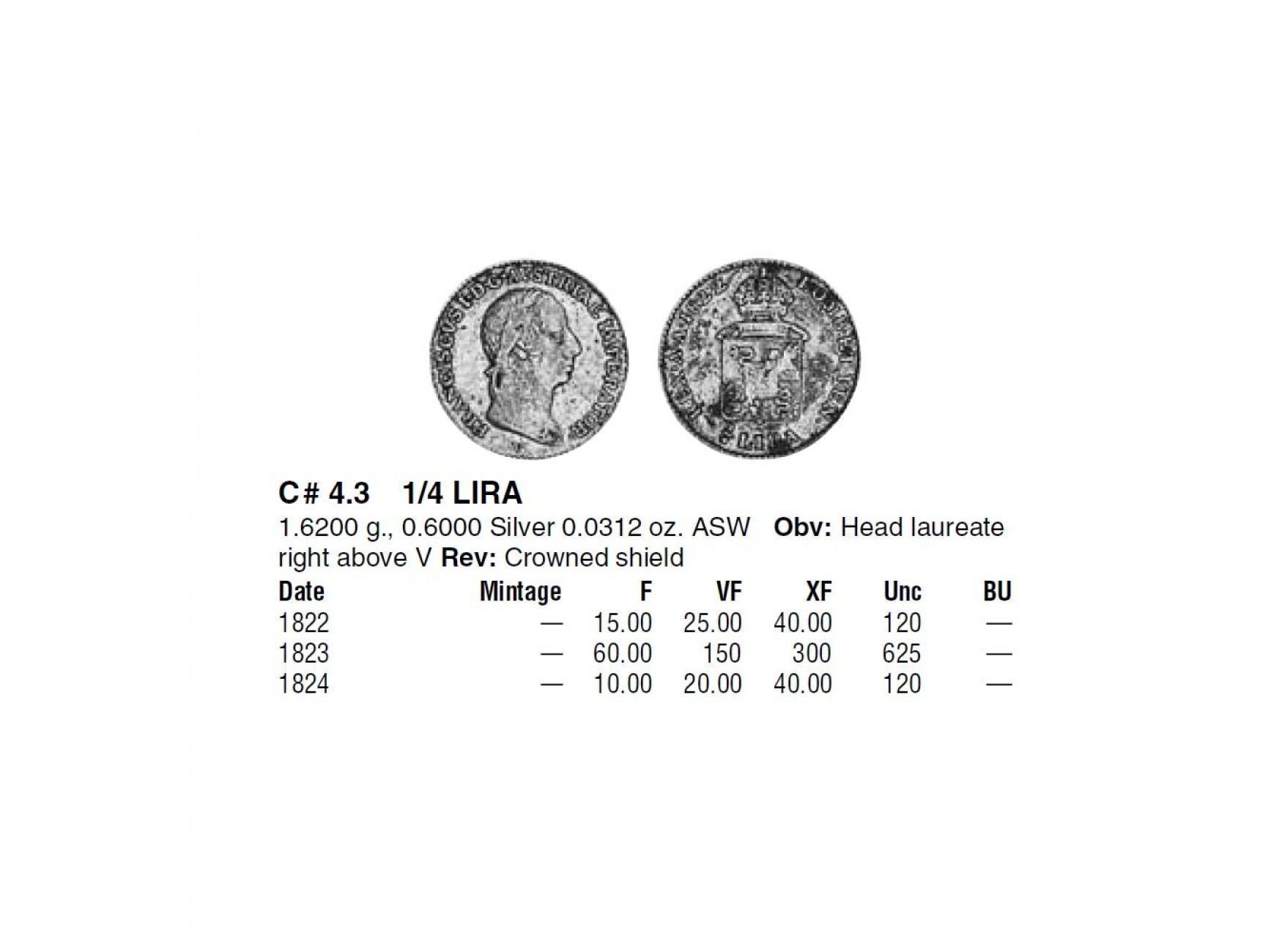 Ломбардия-Венеция 1/4 лиры 1822 г. V
