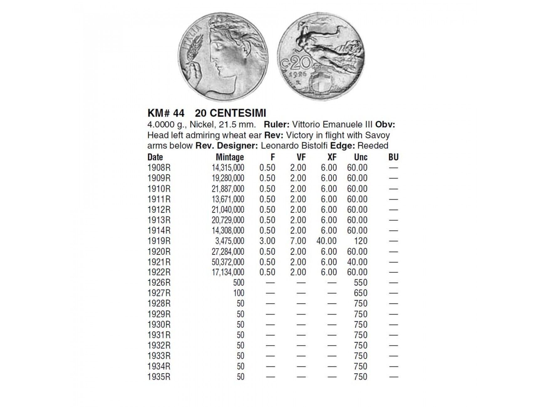 Италия 20 чентезимо 1921 г.