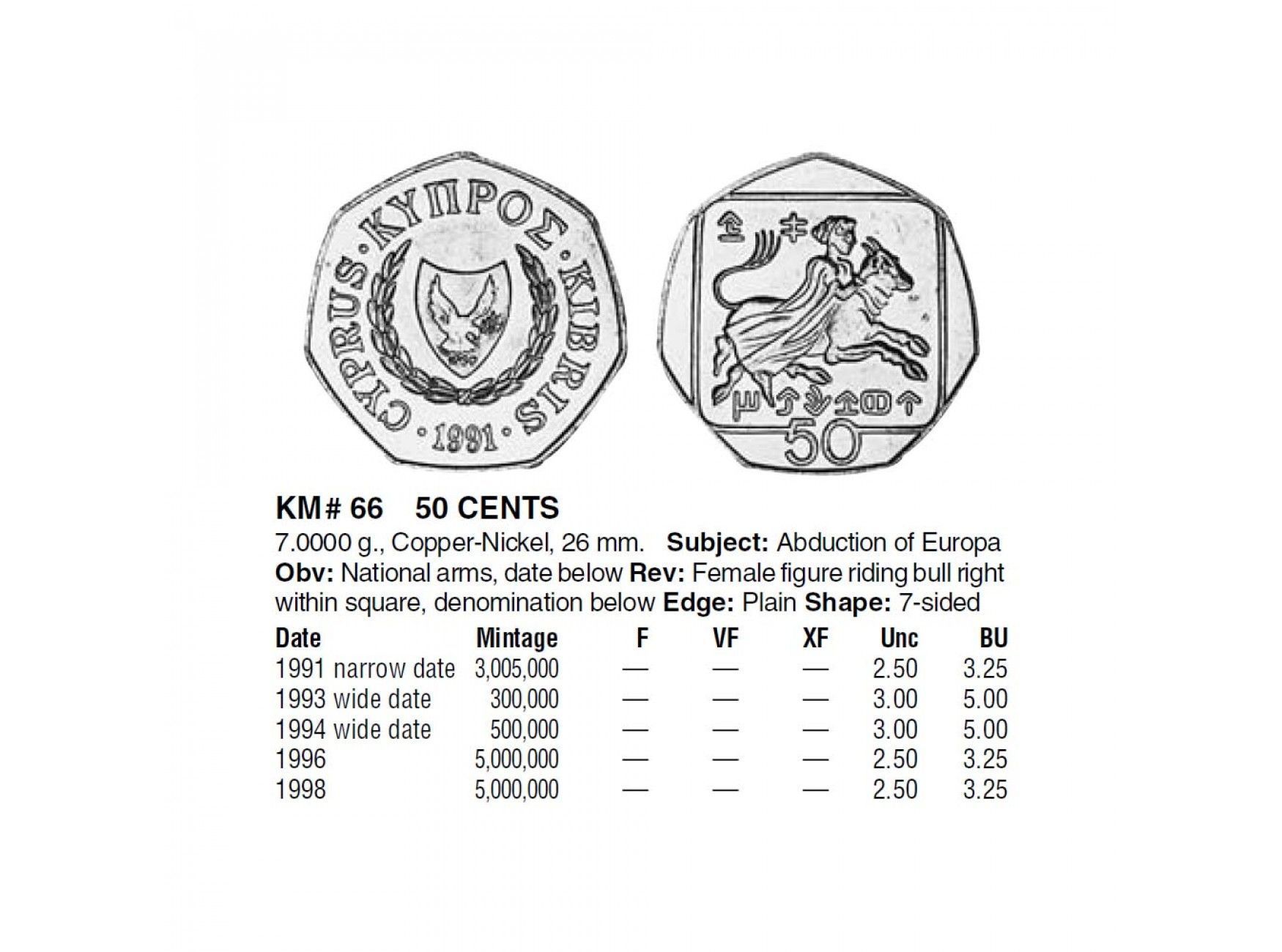 Кипр 50 центов 1996 г.