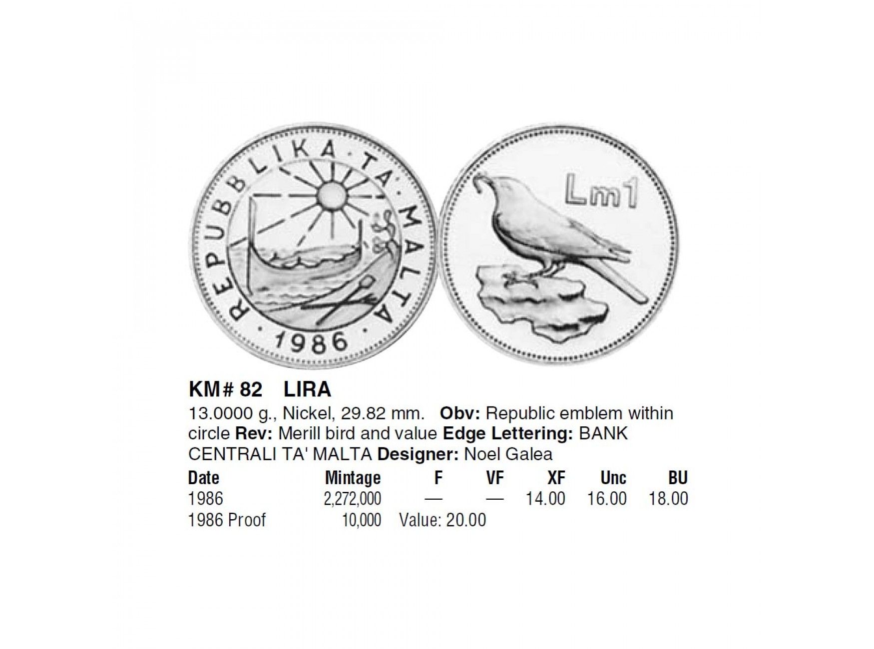 Мальта 1 лира 1986 г.
