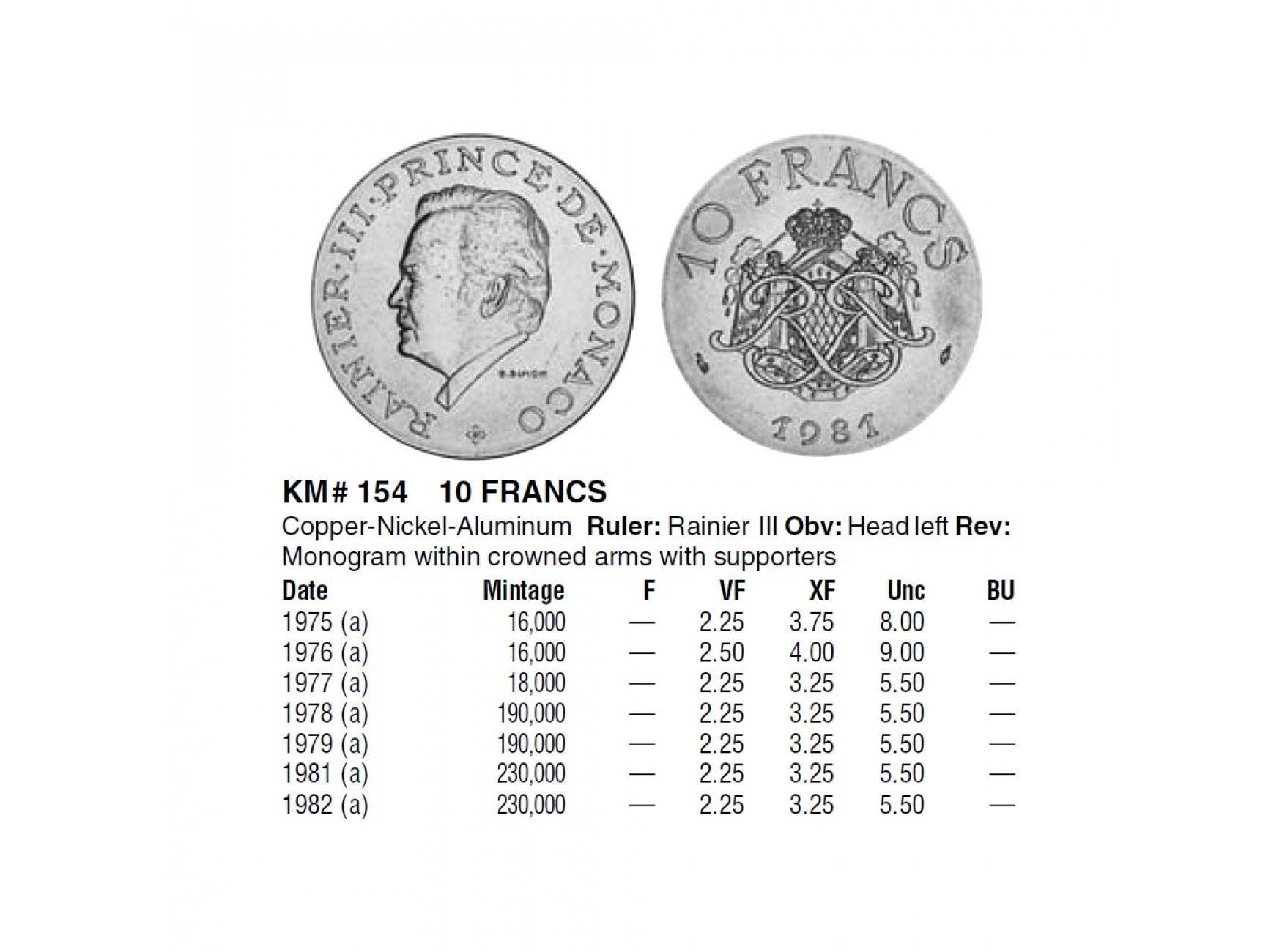 Монако 10 франков 1982 г.