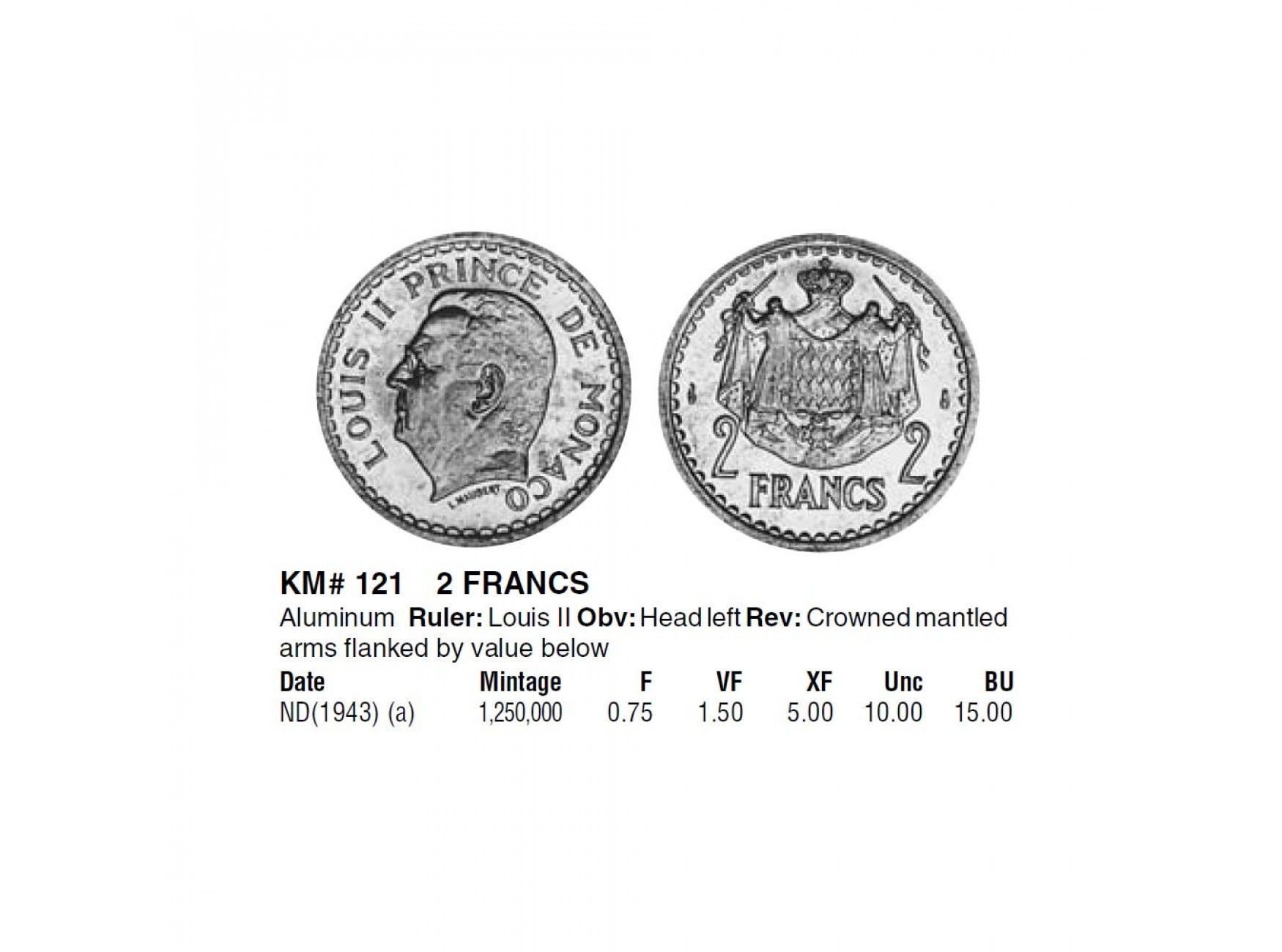 Монако 2 франка 1943 г.