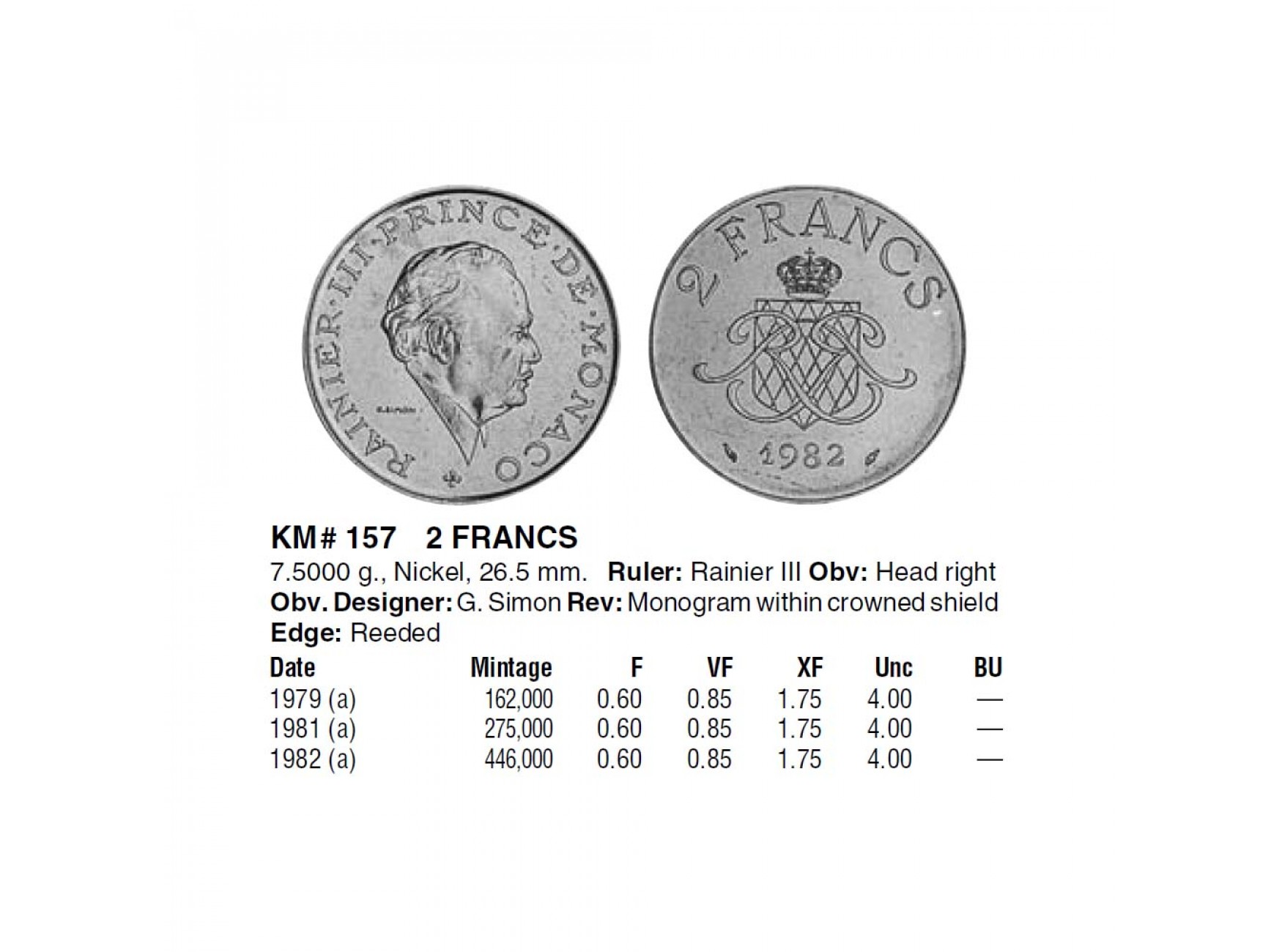 Монако 2 франка 1979 г.