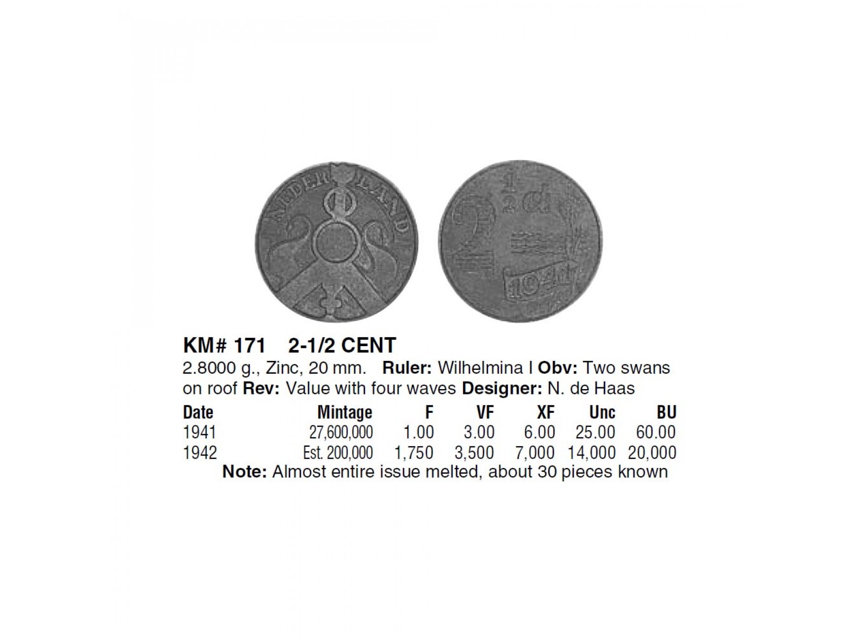 Нидерланды 2 1/2 цента 1941 г.