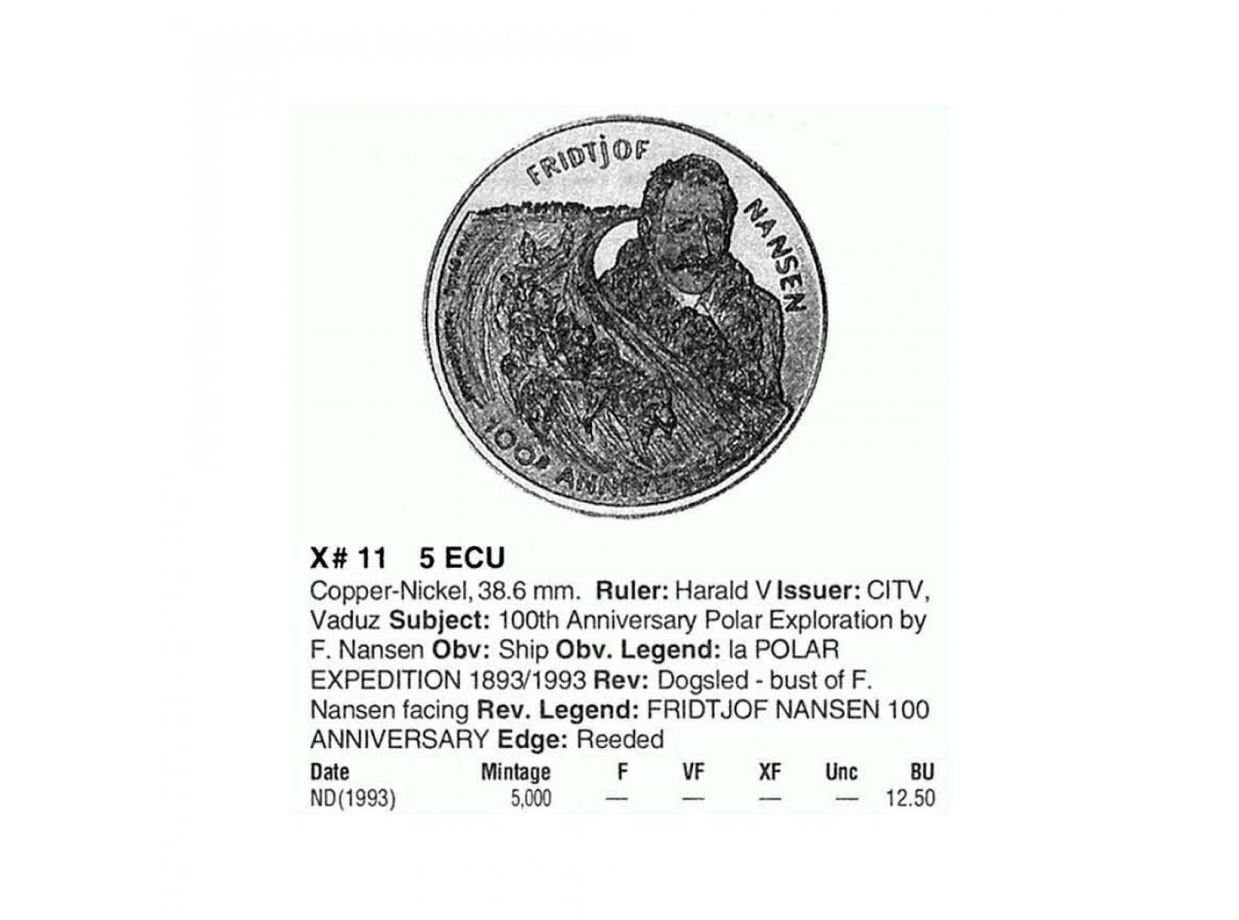 Норвегия 5 экю 1993 г. (100-летие первой полярной экспедиции)