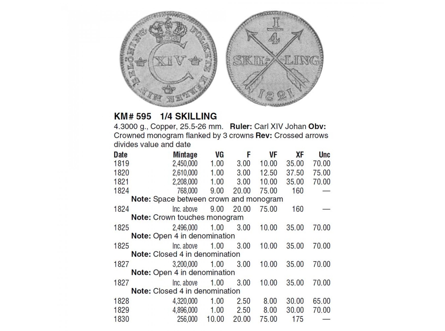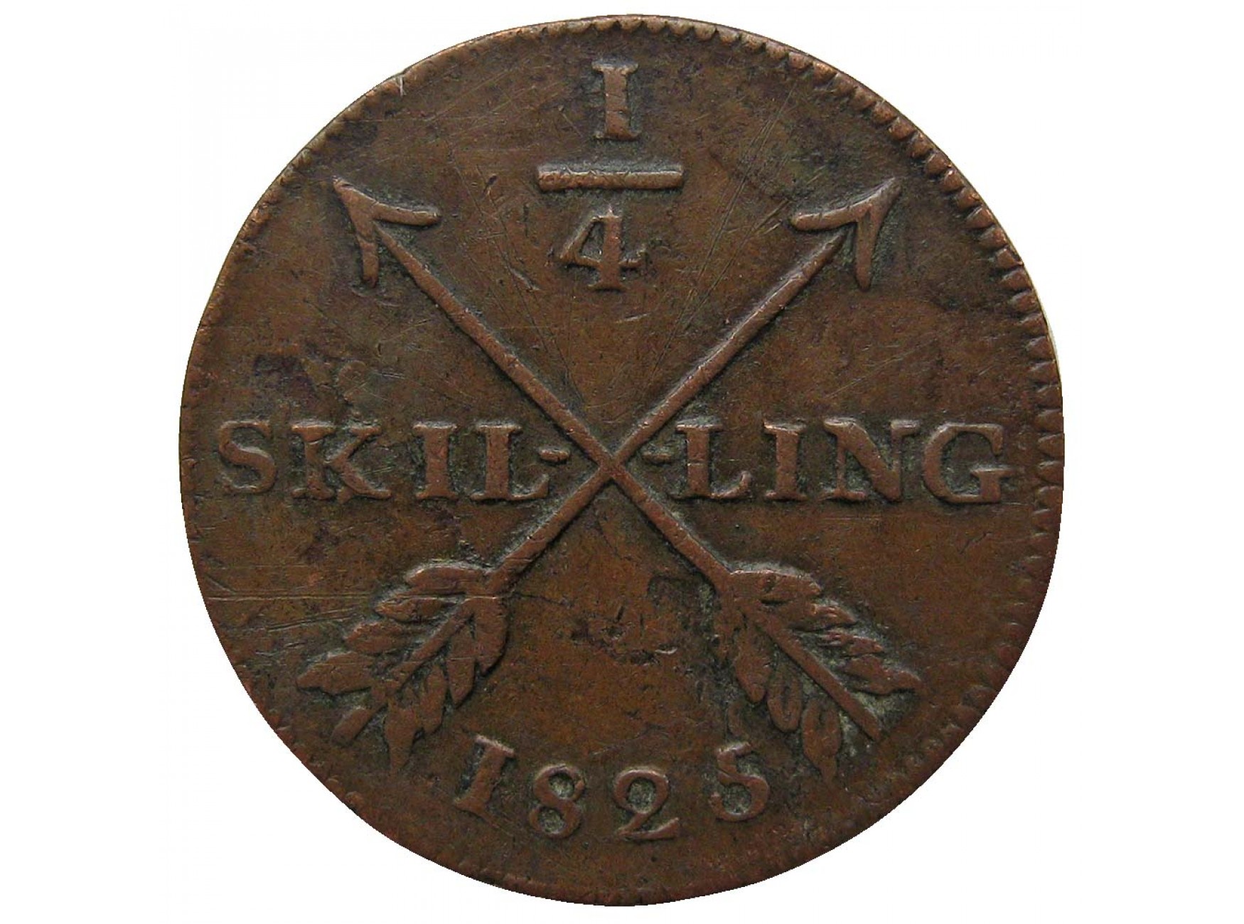Швеция 1/4 скиллинга 1825 г.
