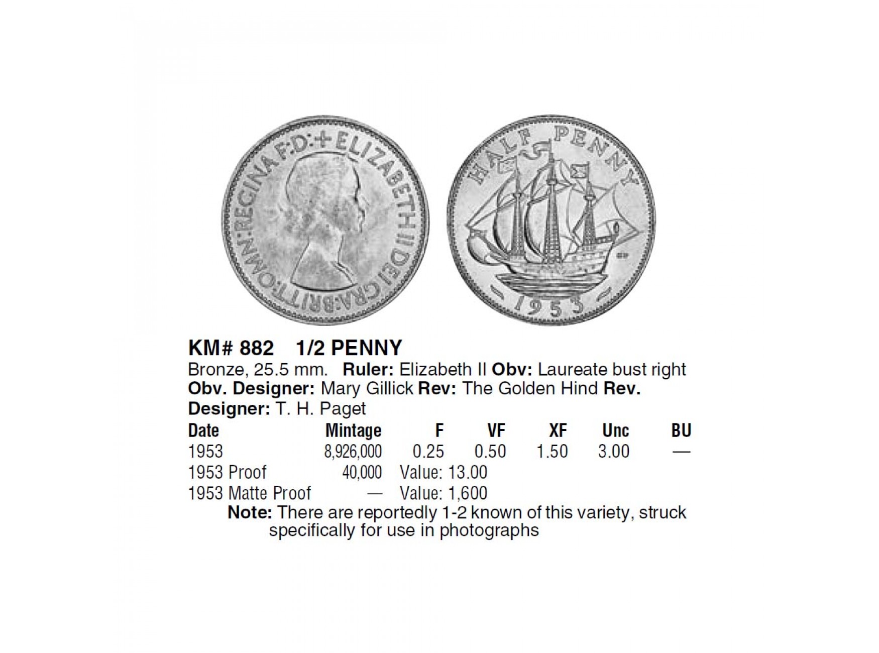Великобритания 1/2 пенни 1953 г.