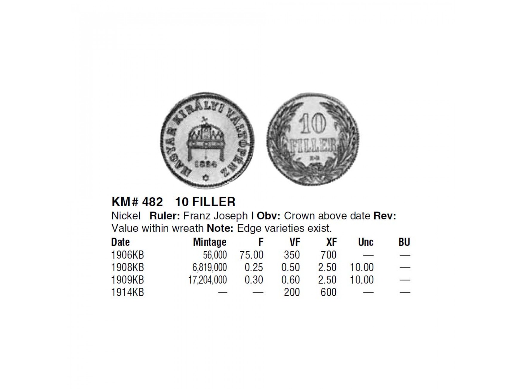 Венгрия 10 филлеров 1909 г.