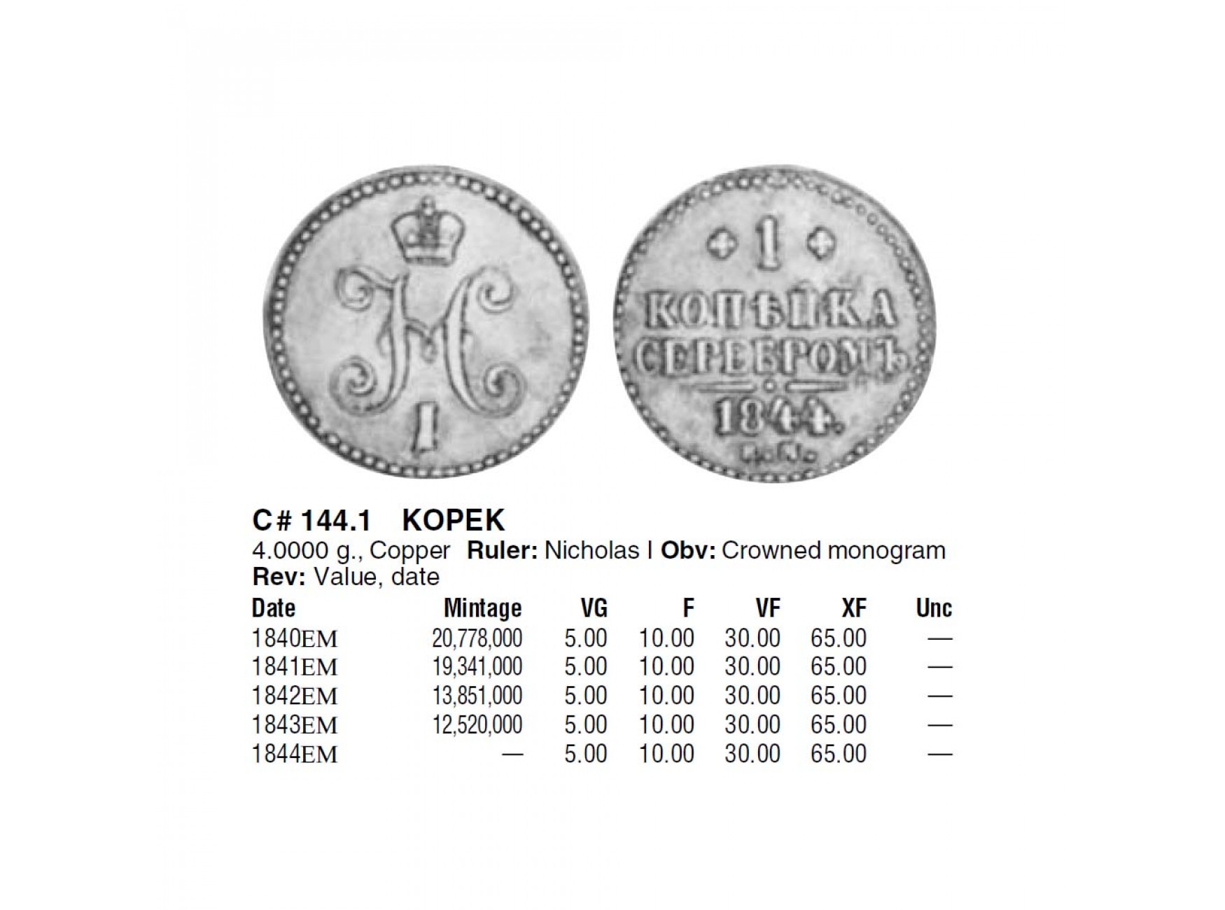 Россия 1 копейка 1840 г. ЕМ