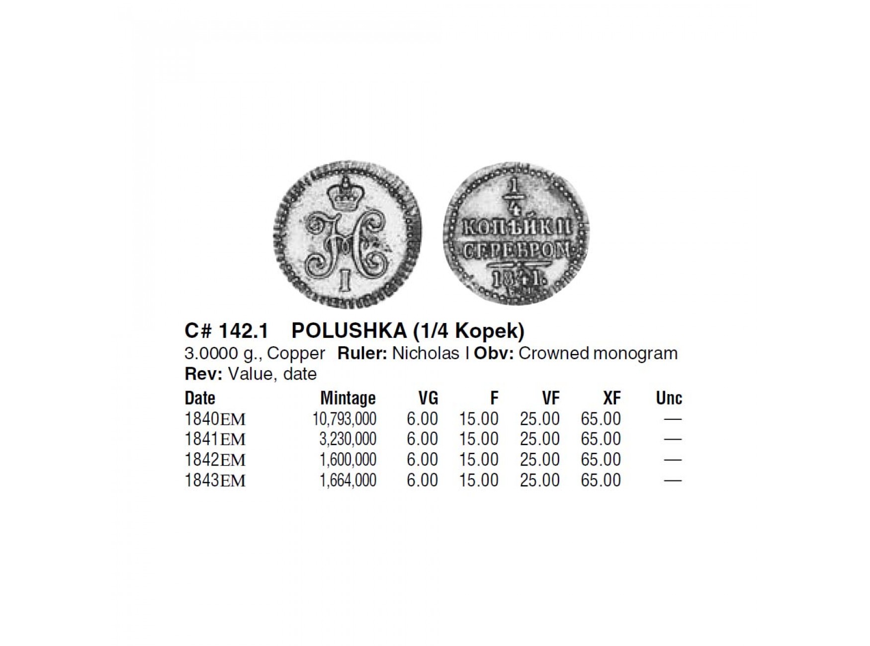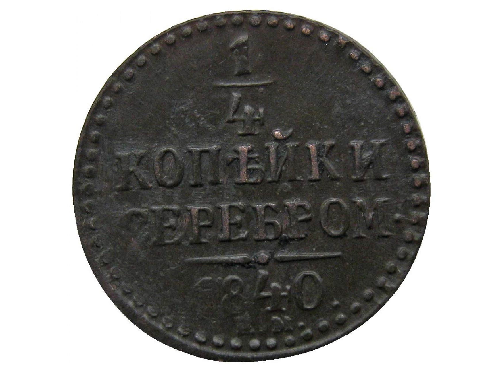 Россия 1/4 копейки 1840 г. ЕМ
