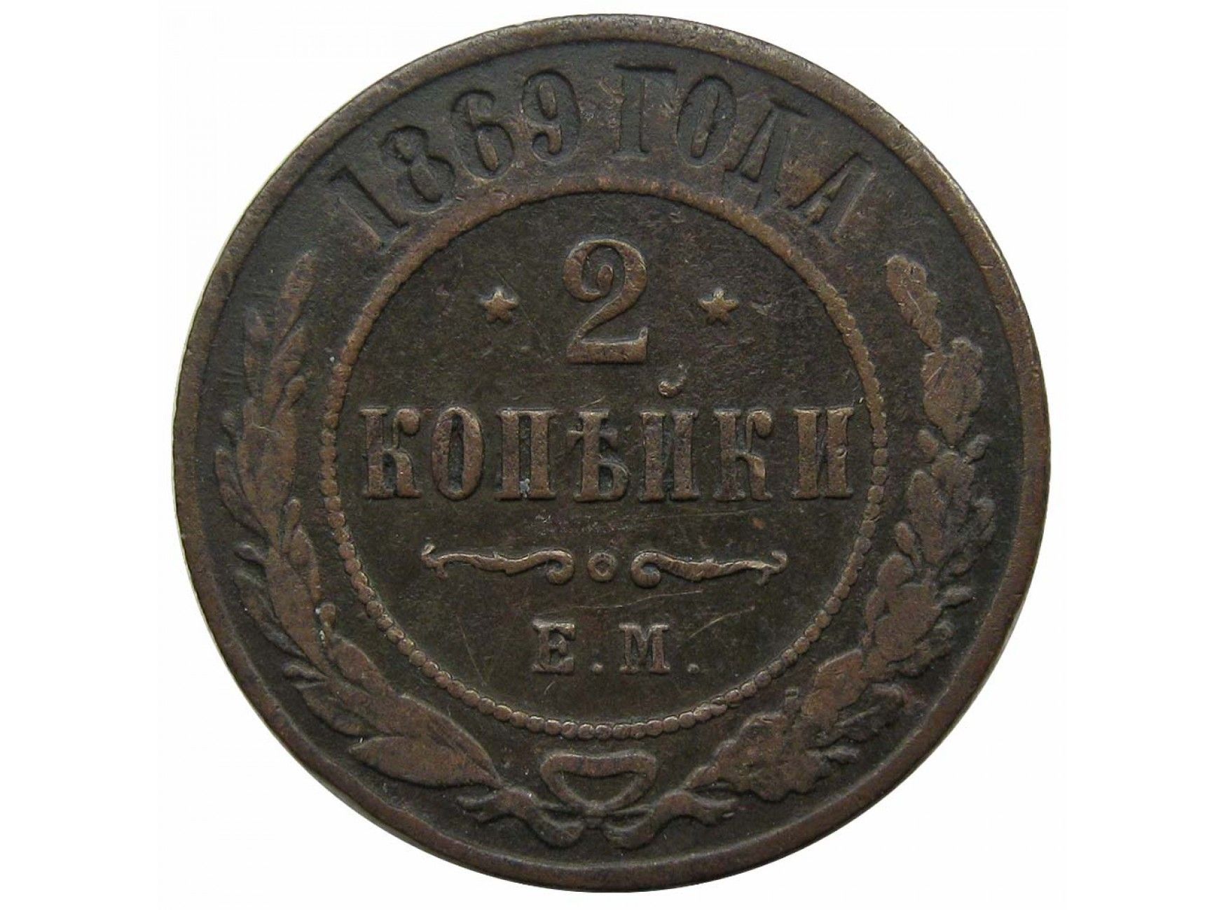 Россия 2 копейки 1869 г. ЕМ