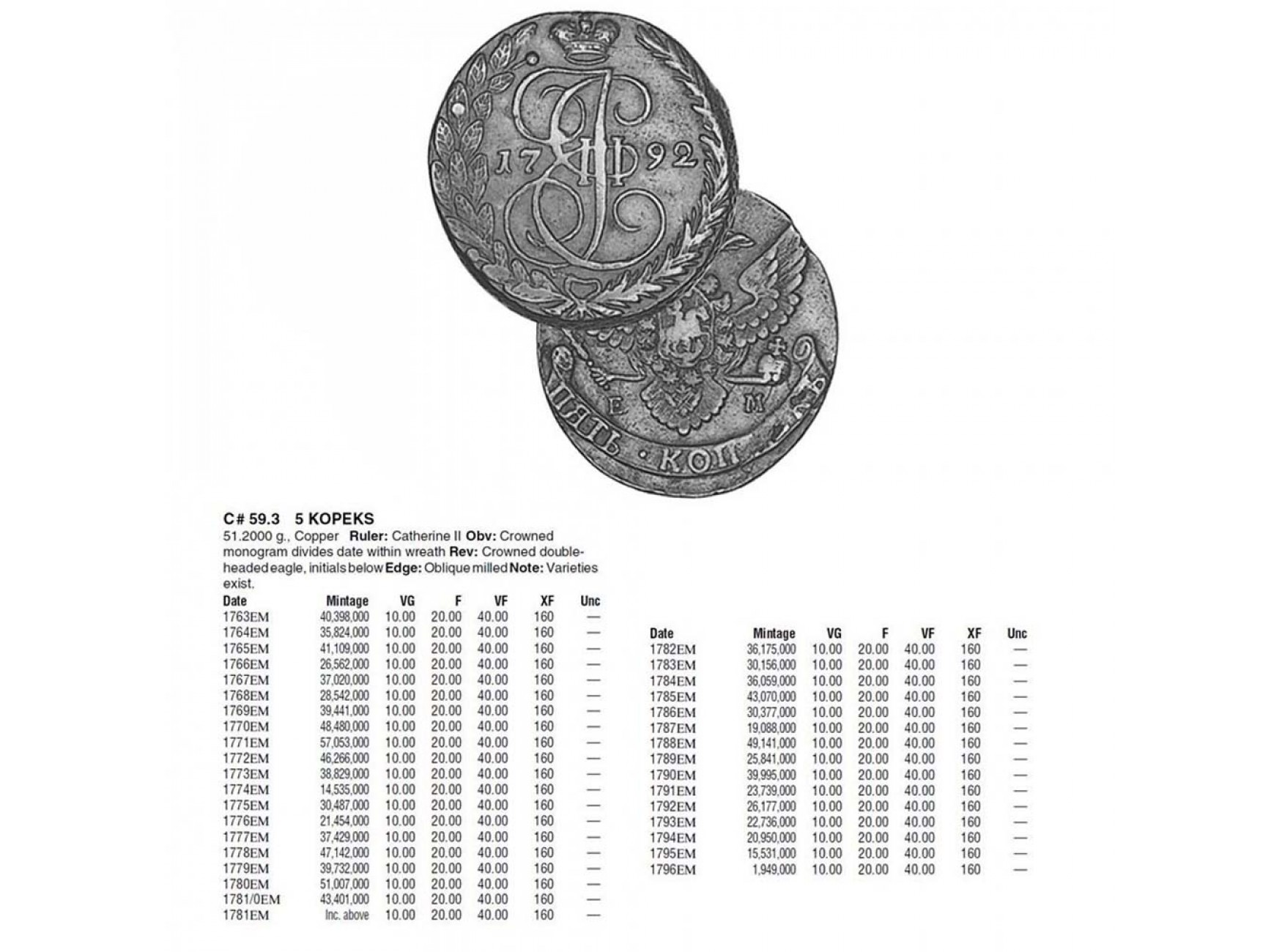 Россия 5 копеек 1790 г. ЕМ