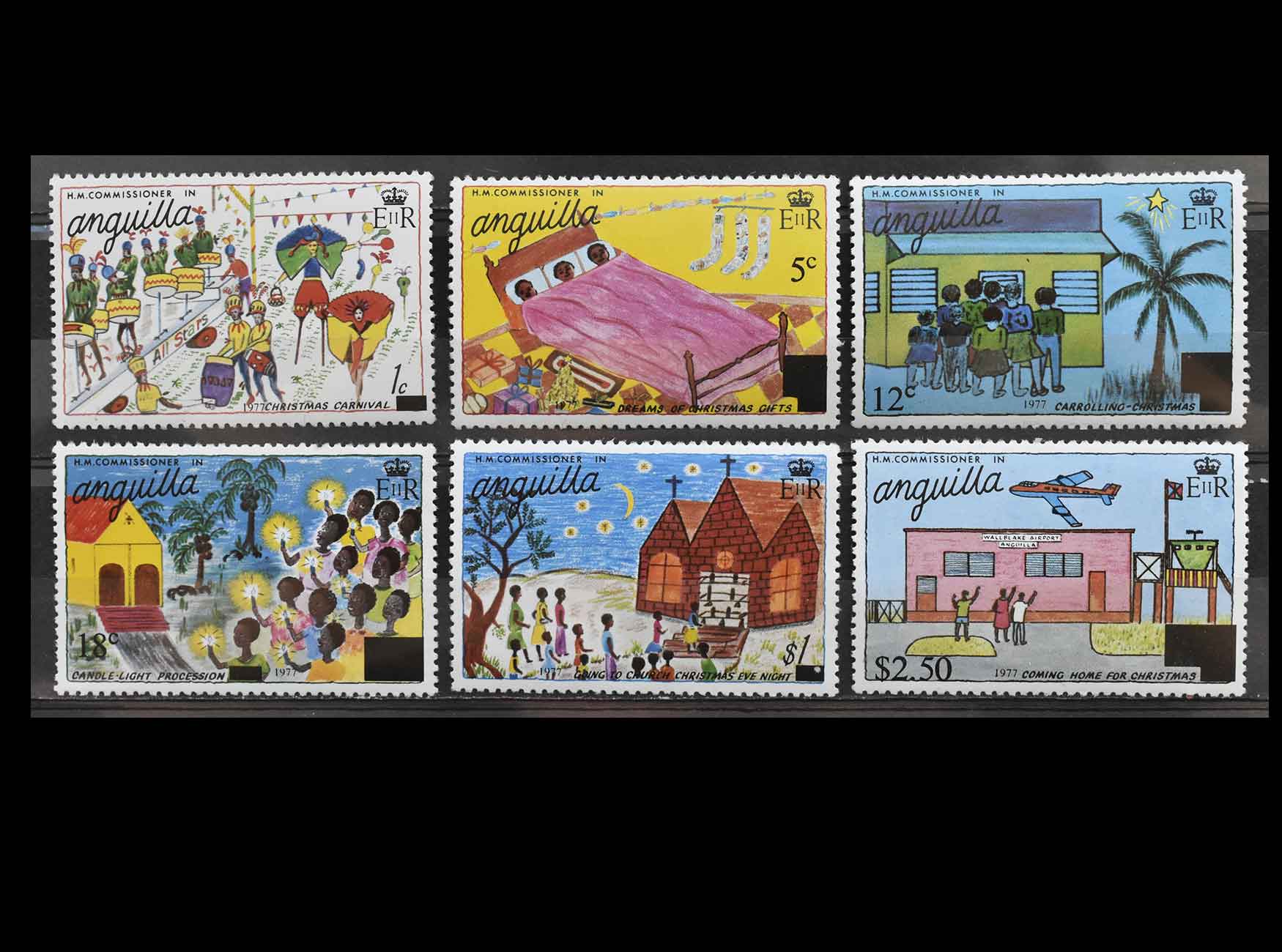 Ангилья 1977 г. "Детские рисунки" (надпечатки)
