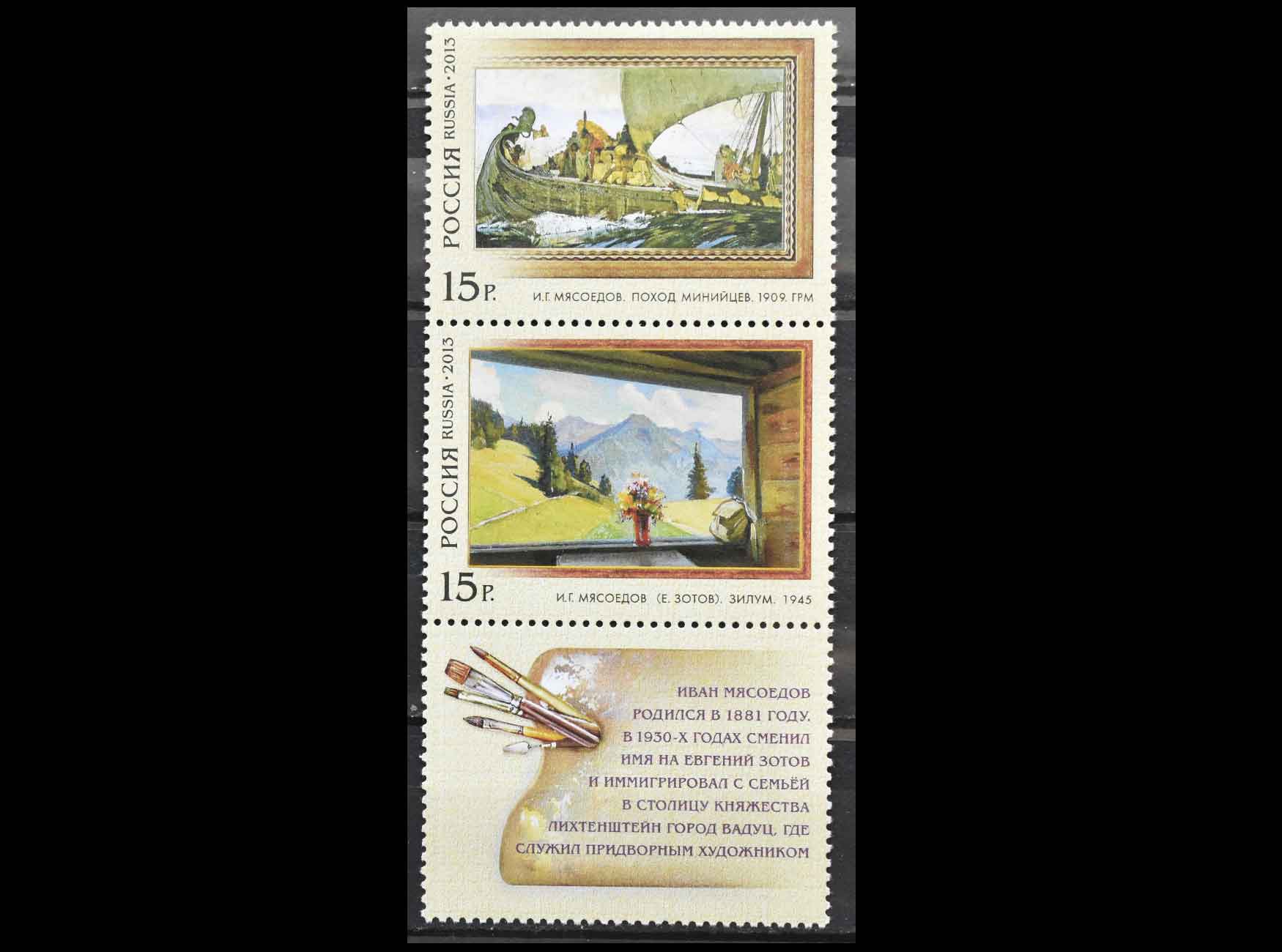 Россия 2013 г. "Совместный выпуск России и Лихтенштейна: Иван Мясоедов" (купон)