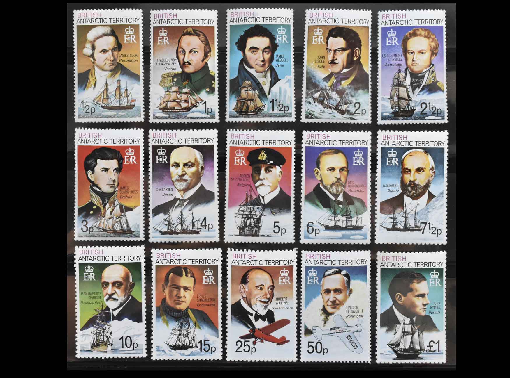 Британская антарктическая территория 1973 г. "Исследователи Антарктики на своих кораблях и самолетах"