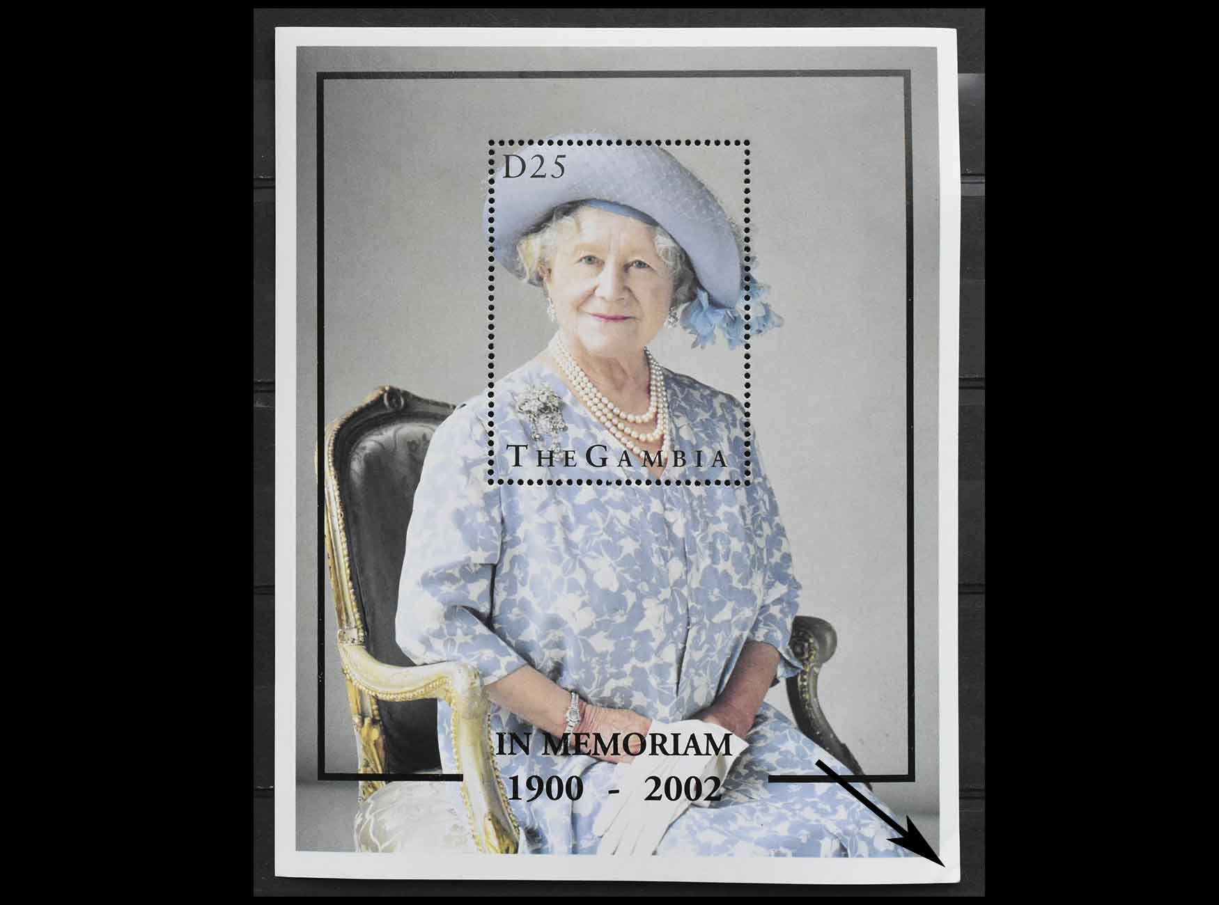 Гамбия 2002 г. "В память о королеве Елизавете, королеве-матери"